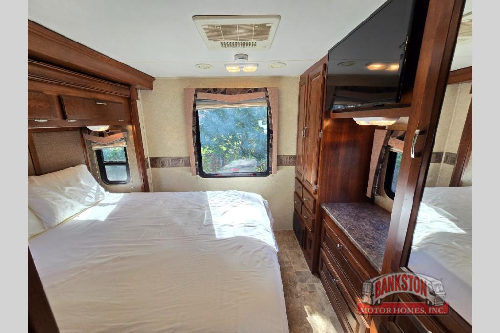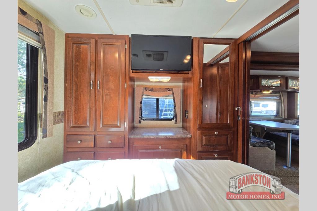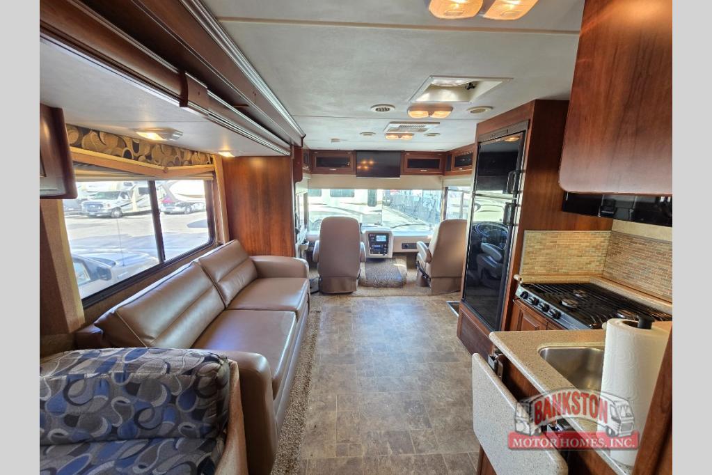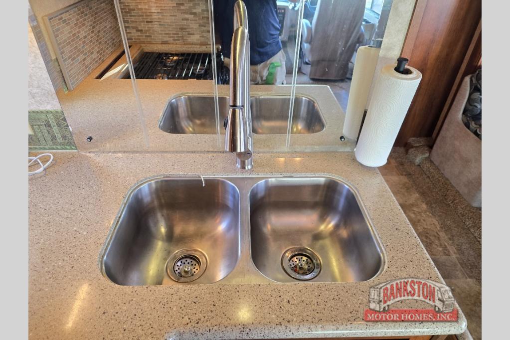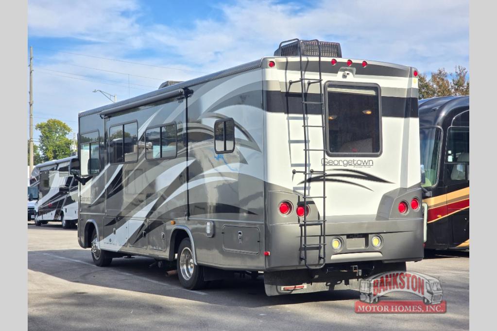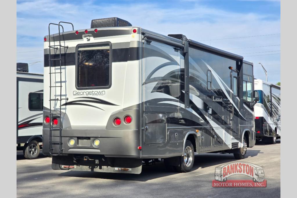 Double Slide Georgetown Motor Home Class A, Rear Queen Bed Slideout, Double Wardrobe, Booth Dinette/Sofa Slideout, Shower, Toilet, Lav., Med. Cab., Double Kitchen Sink, 3-Burner Range, Microwave, Refrigerator, TV, Overhead Cabinets Throughout & Much More. Available Options May Include: TV in Bedroom.