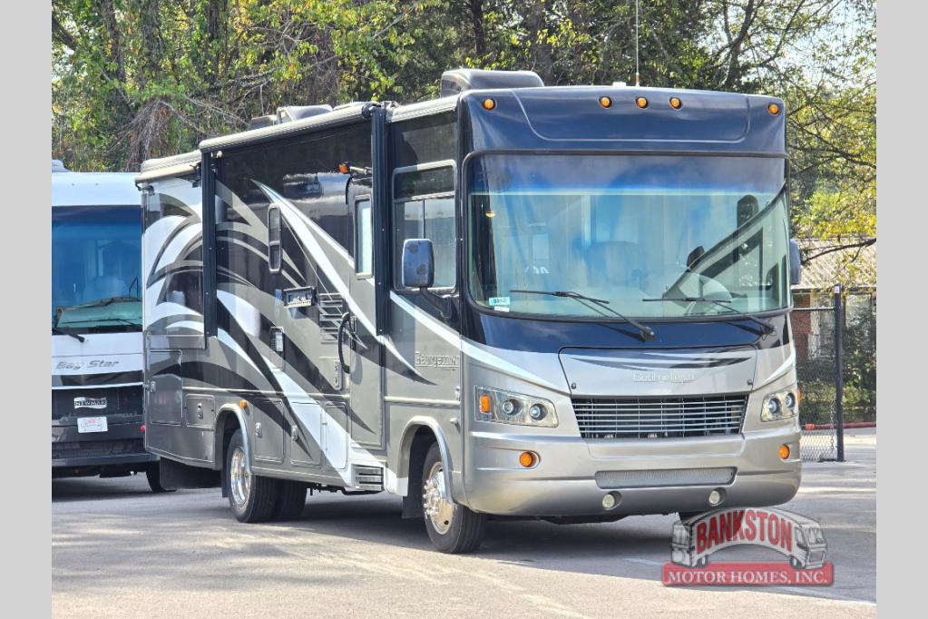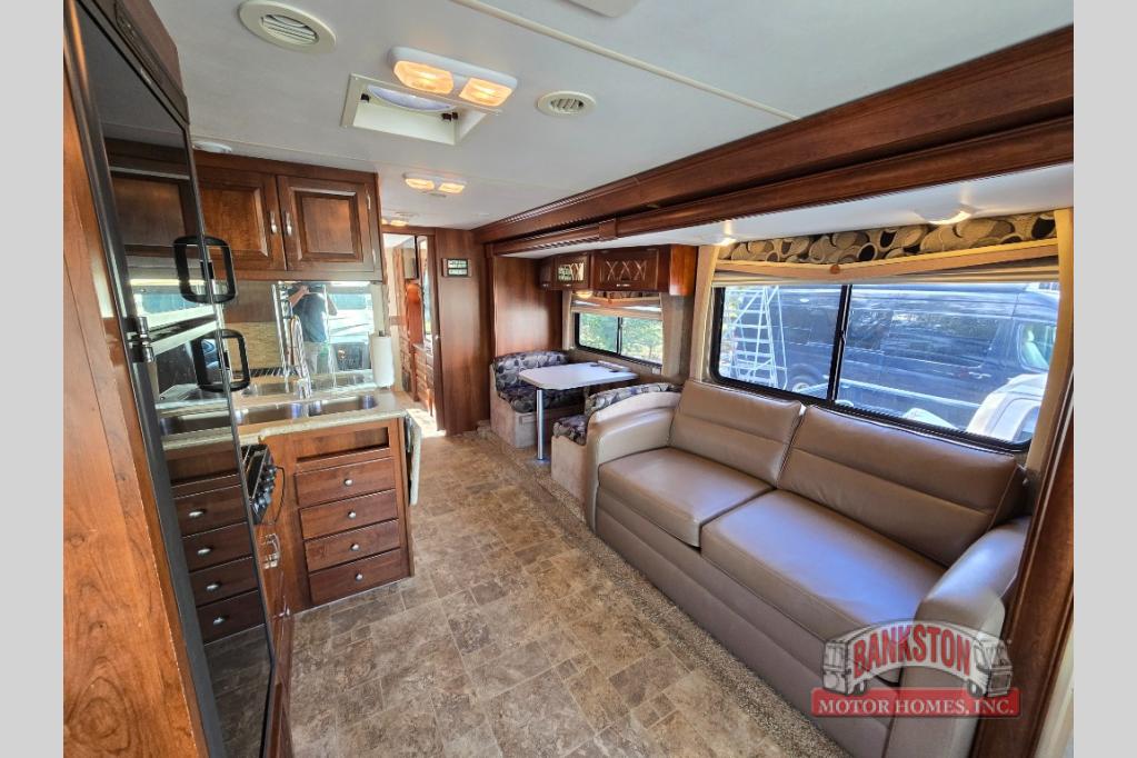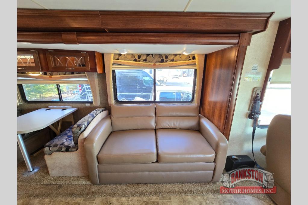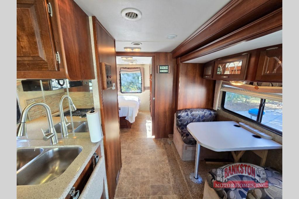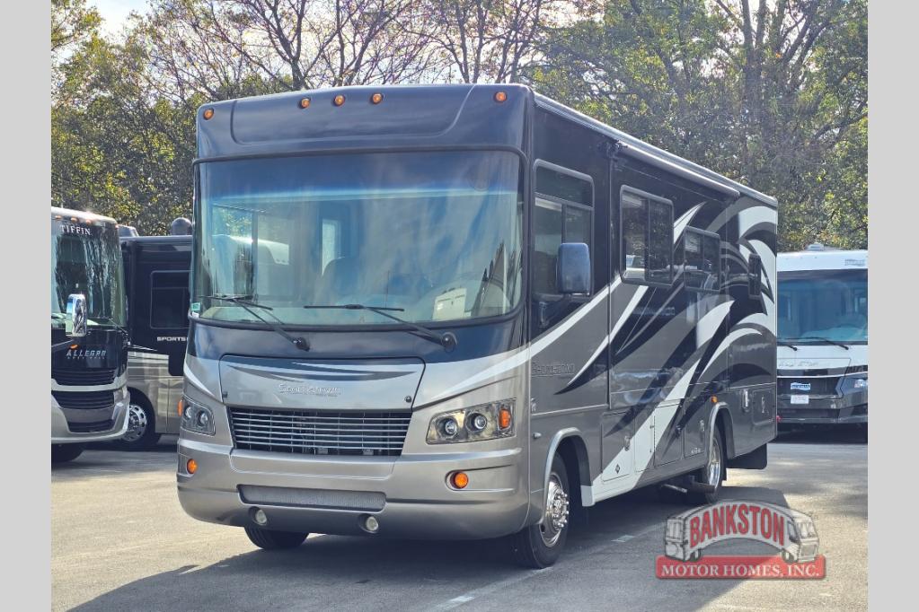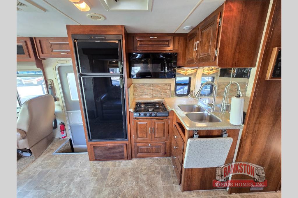 Double Slide Georgetown Motor Home Class A, Rear Queen Bed Slideout, Double Wardrobe, Booth Dinette/Sofa Slideout, Shower, Toilet, Lav., Med. Cab., Double Kitchen Sink, 3-Burner Range, Microwave, Refrigerator, TV, Overhead Cabinets Throughout & Much More. Available Options May Include: TV in Bedroom.