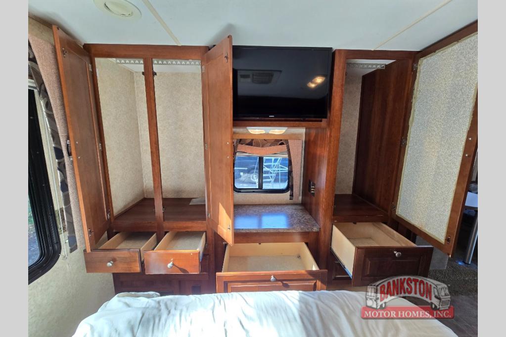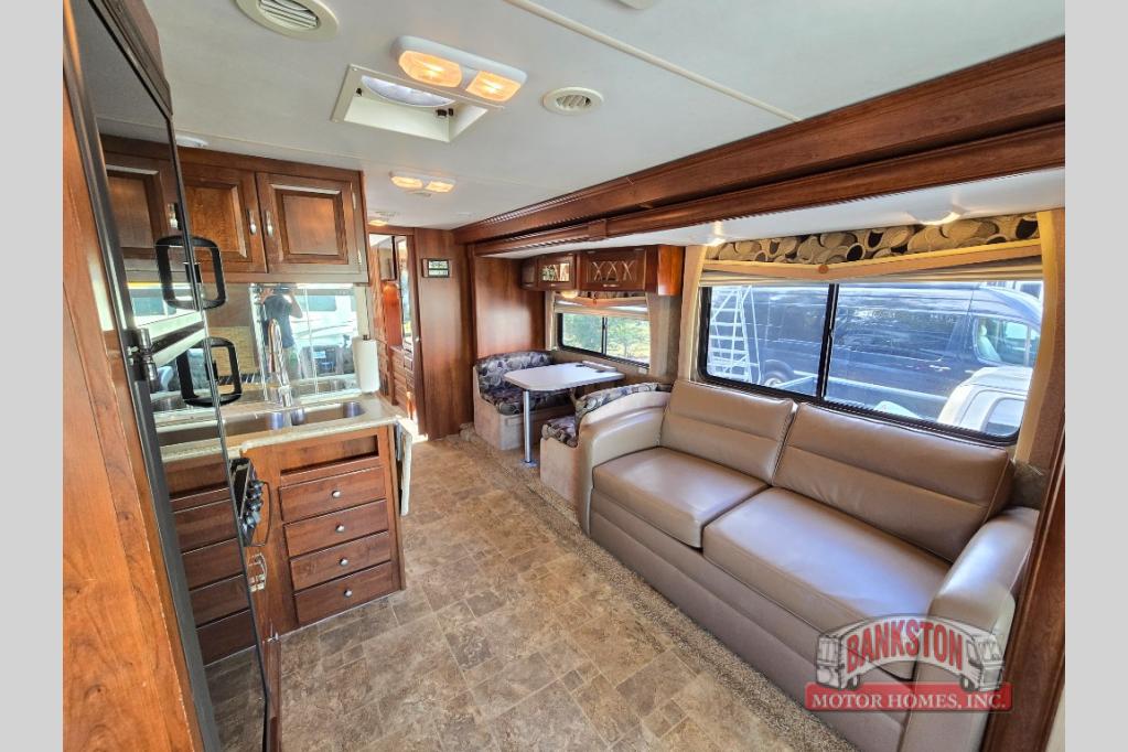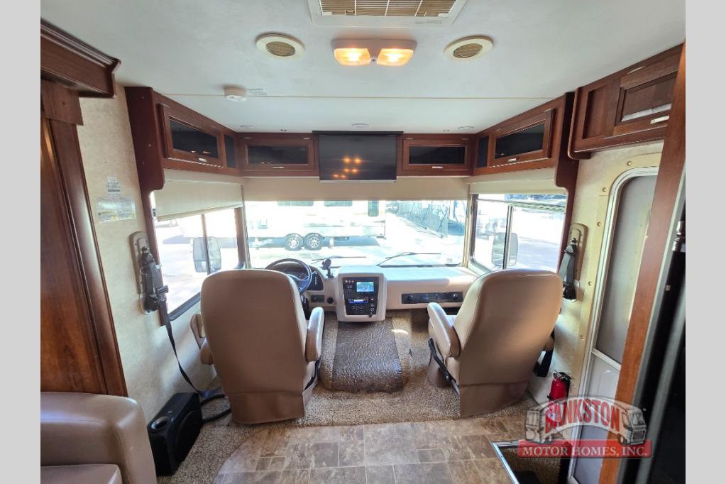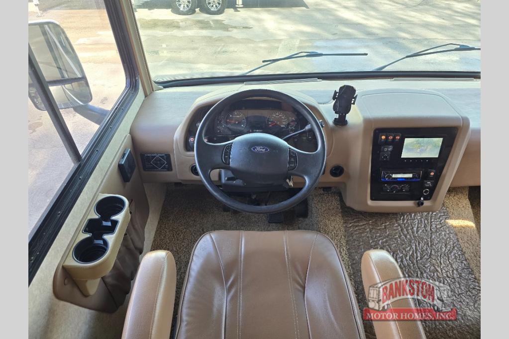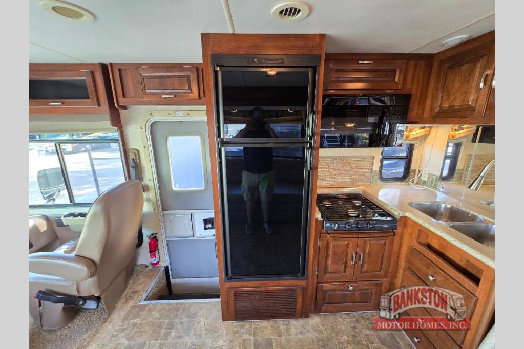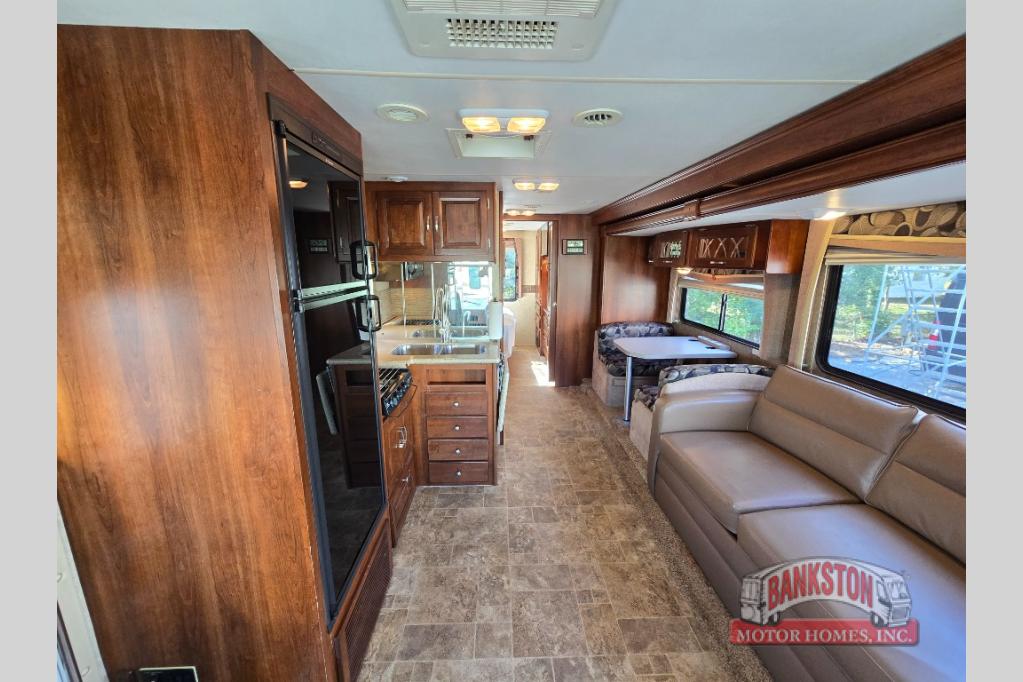 Double Slide Georgetown Motor Home Class A, Rear Queen Bed Slideout, Double Wardrobe, Booth Dinette/Sofa Slideout, Shower, Toilet, Lav., Med. Cab., Double Kitchen Sink, 3-Burner Range, Microwave, Refrigerator, TV, Overhead Cabinets Throughout & Much More. Available Options May Include: TV in Bedroom.