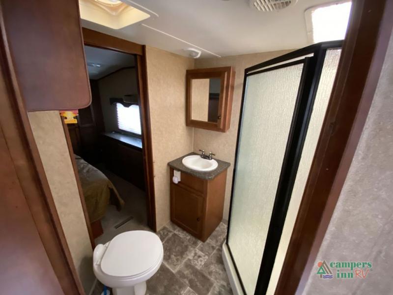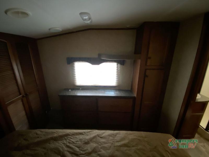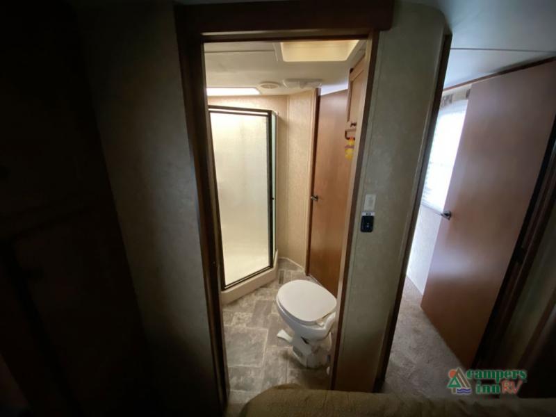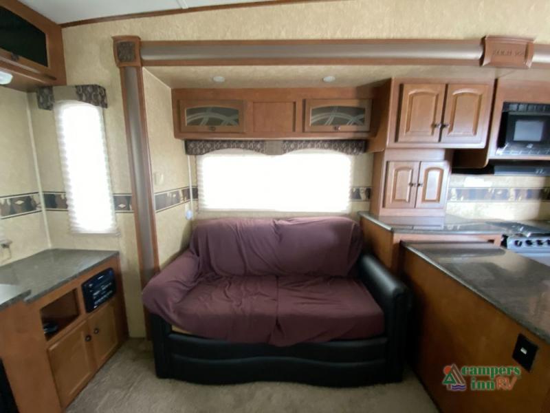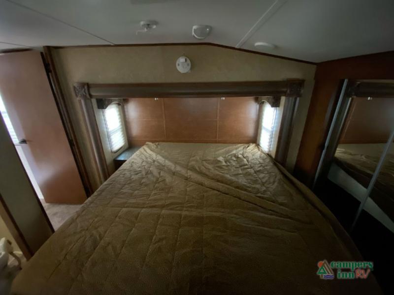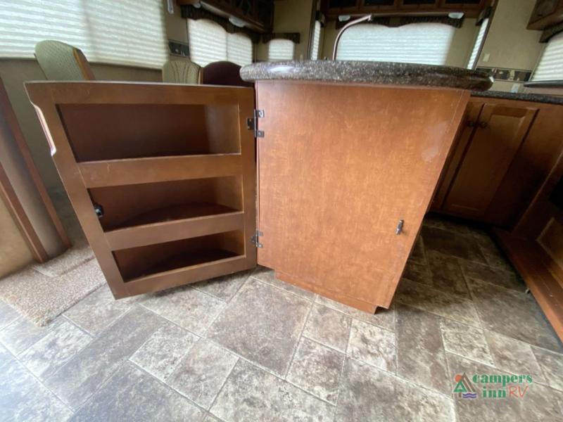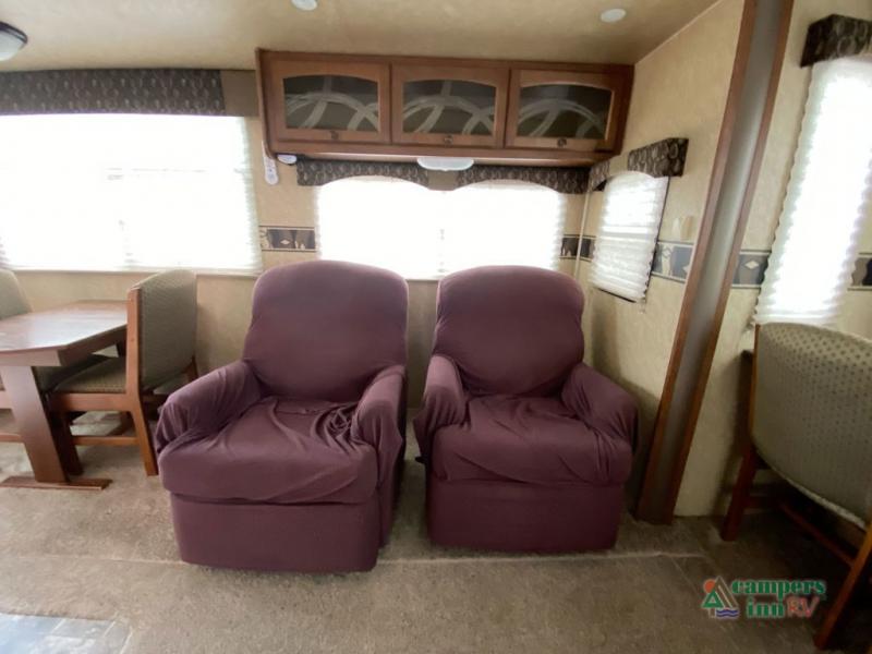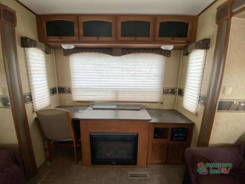 Heartland ElkRidge FW w/Rear Full End Wall Ent. Center w/Desk, Overhead Cabinets, Sofa/L-Shaped Counter w/Dbl. Kitchen Sink/3 Burner Range/Refrigerator & Pantry Slide, 2 Recliner/Gliders & Free Standing Dinette Slide, Step Up to Side Aisle Bath w/Angle Shower, Toilet & Sink, Dbl. Bath Entry, Front King Bed Slide w/Upgraded Pillow-top Mattress & Nightstand, Wardrobe w/Sliding Doors, Dresser, Washer/Dryer Prep, and So Much More! Avail. Options May Include: 4-Door Refrig., Fireplace, Queen Bed.