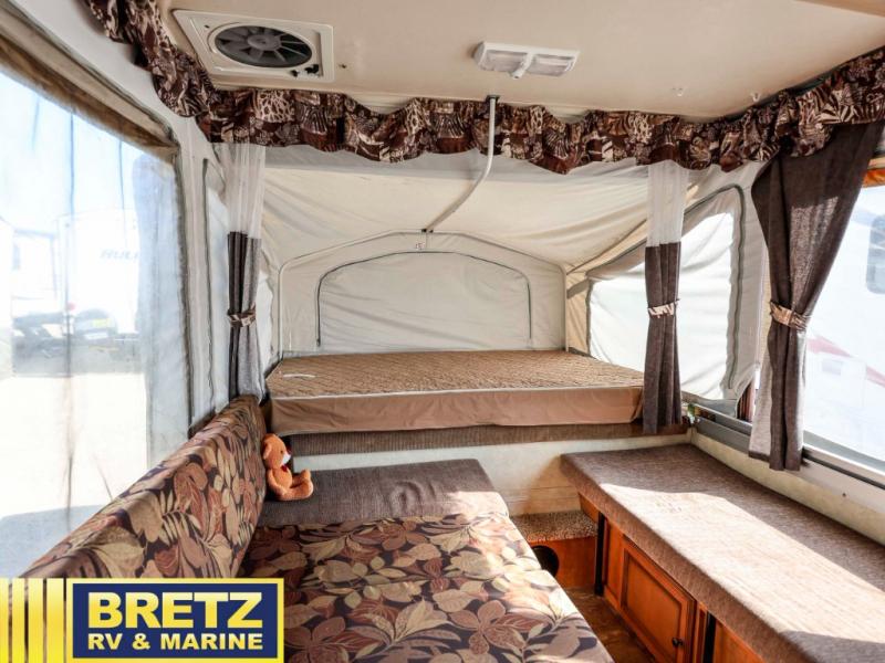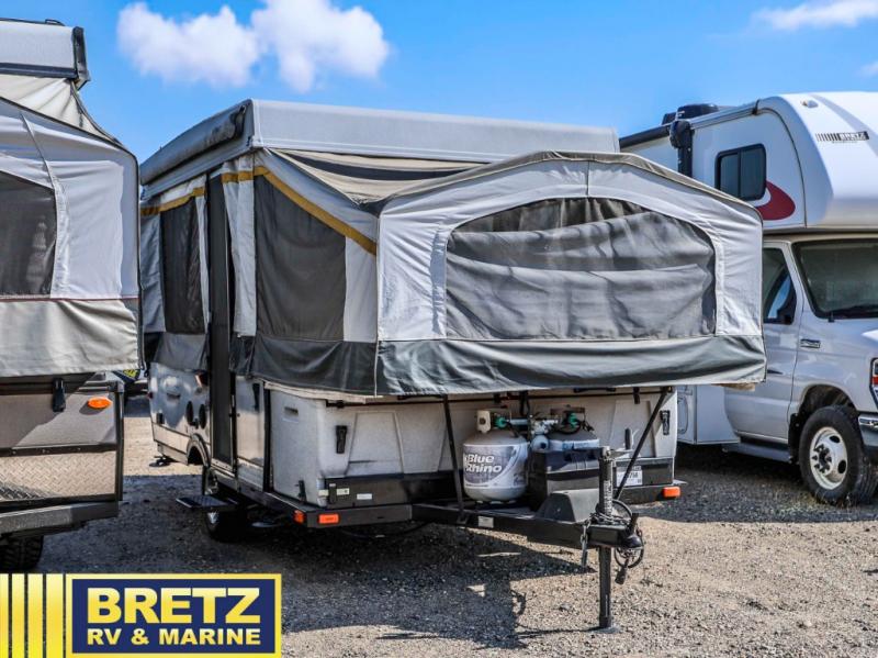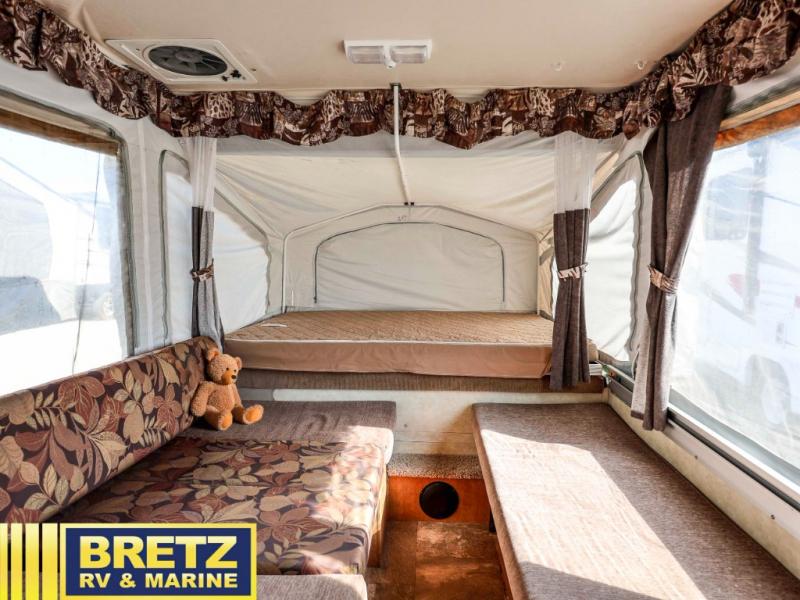 Traverse Folding Pop-Up Camper by Palomino w/Front 66" Bunk, Rear 54" Bunk Tent Bed, Booth Dinette w/Storage Below Seating, Storage Cabinets, Slide Gaucho, 3 Burner Cooktop, Sink, Front Super Storage Tub and Much More!
