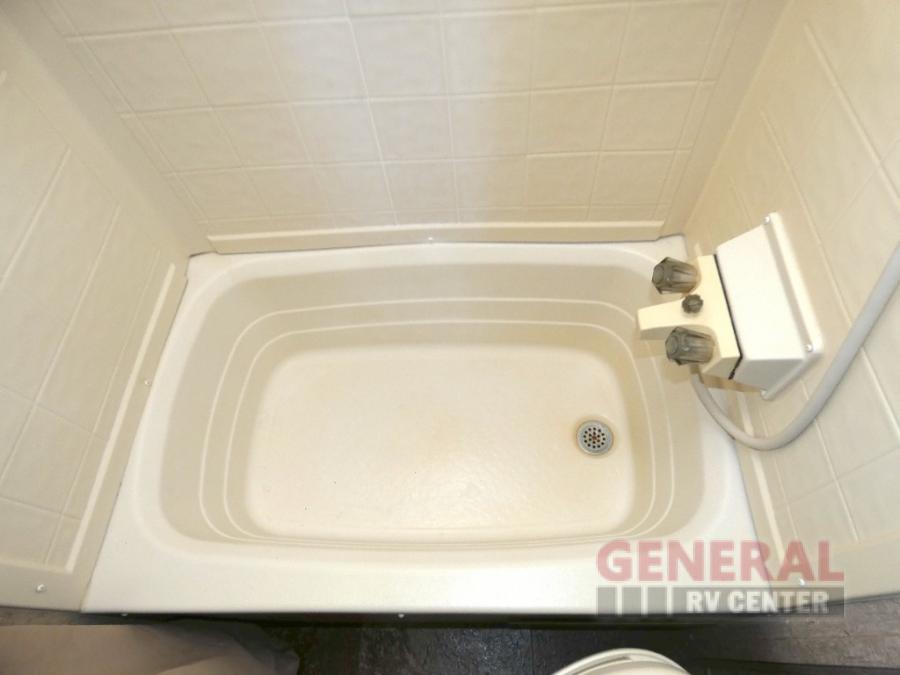 A double bed set of bunks offer plenty of sleeping for family or guests, and the convenient corner bath nearby has a tub/shower, toilet, sink and private entry. This is a great feature allowing the use of the bathroom with a quick step inside when you are enjoying the outdoors.