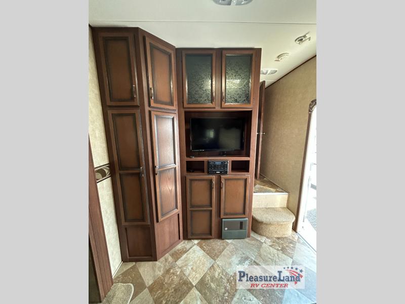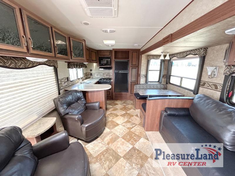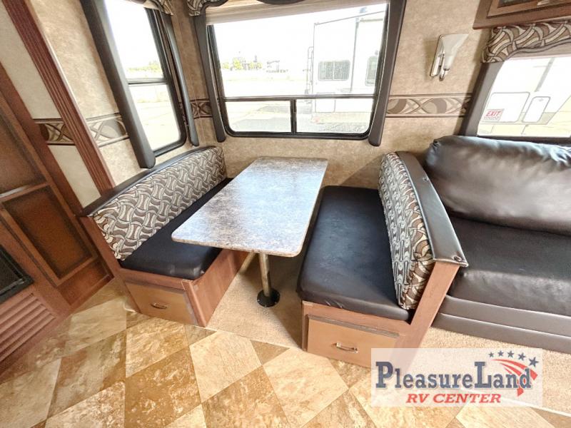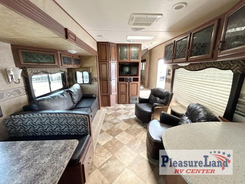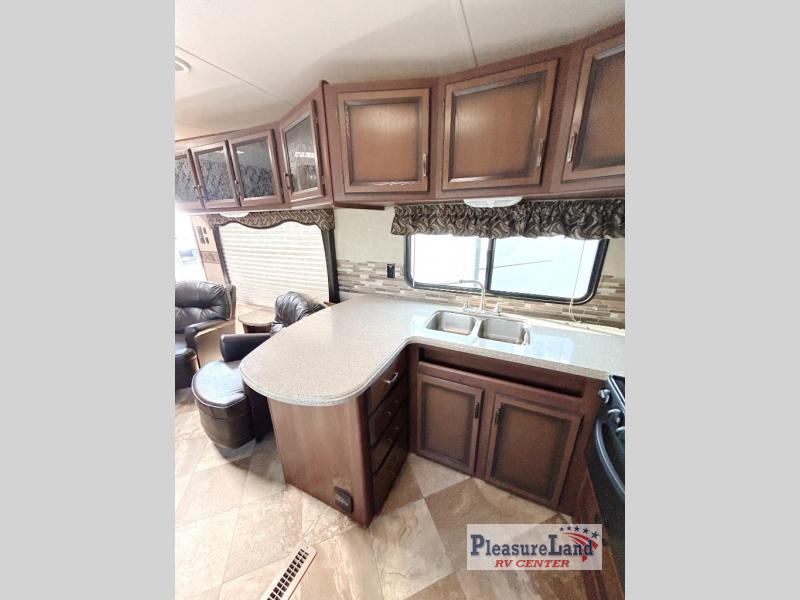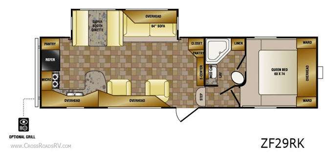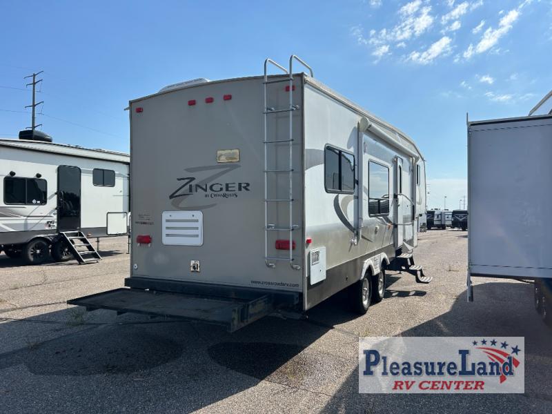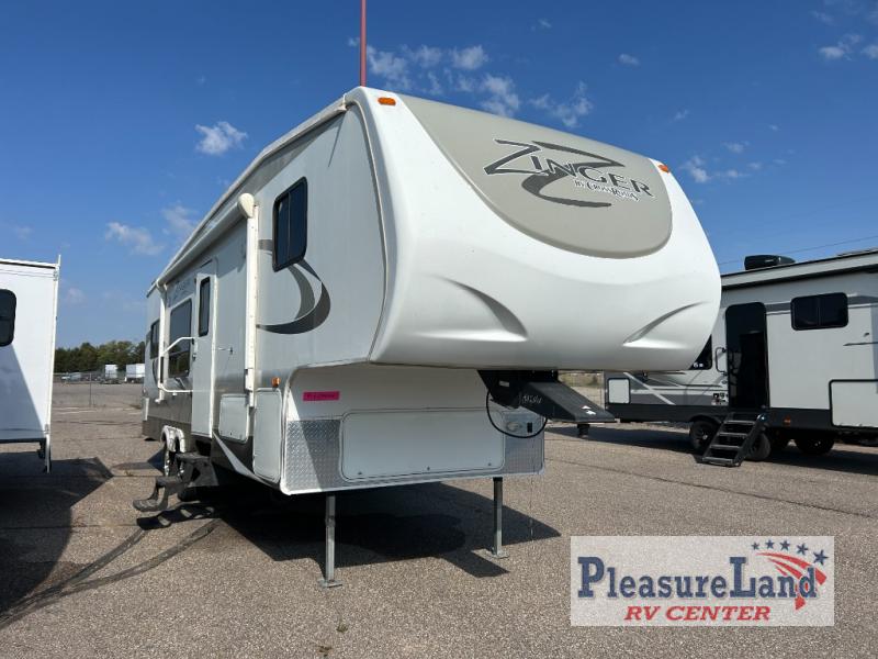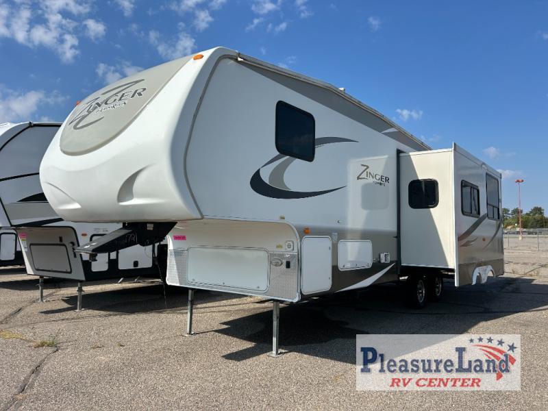 Single Slide Zinger Fifth Wheel, Rear Kitchen w/Pantry, Refrigerator, Microwave, 3-Burner Range, Double Kitchen Sink, 2-Lounge Chairs, Booth Dinette/Sofa Slide, Closet, Pantry, Entertainment Center, Step Up To Bed/Bath, Lav., Med. Cab., Shower, Linen, Toilet, Queen Bed, Dbl. Wardrobes, Overhead Cabinets Throughout & Much More. Available Options May Include: Grill.
