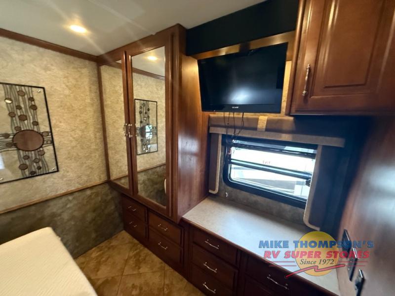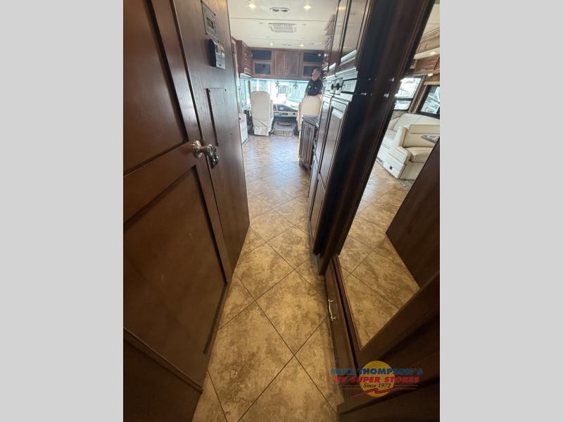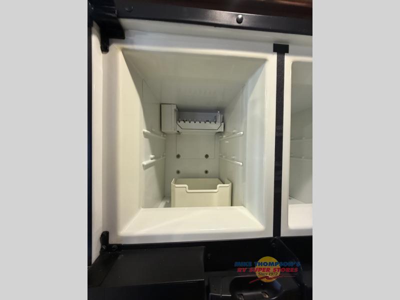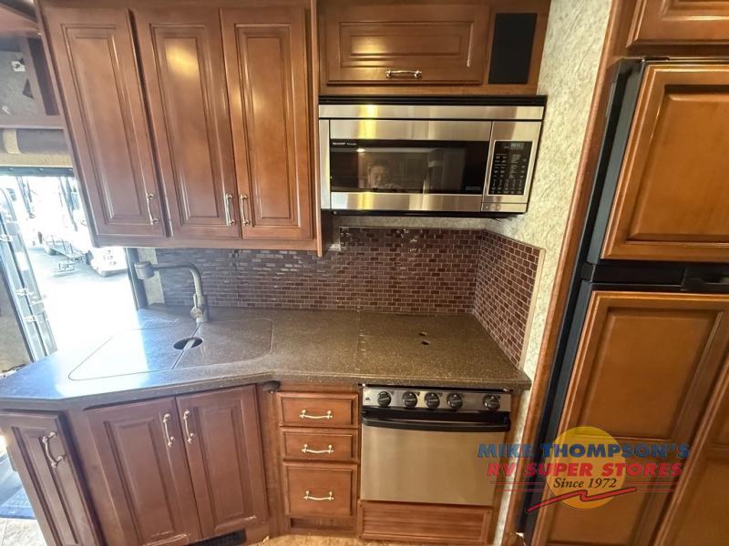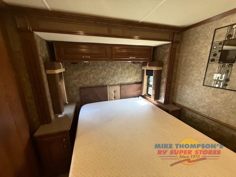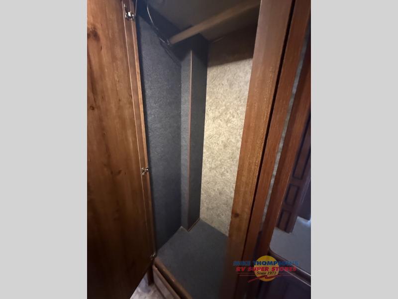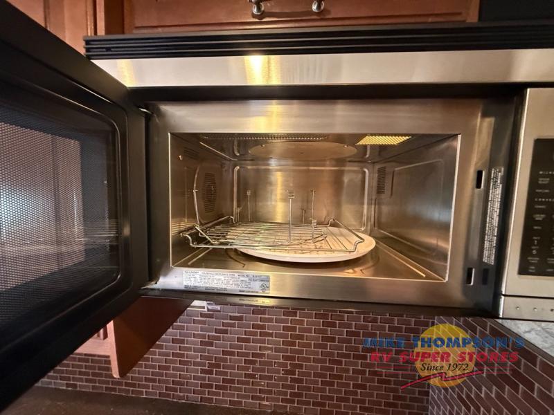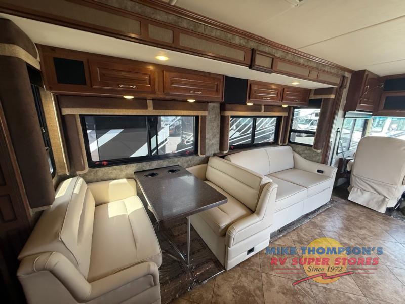 This motor home has plenty of overhead cabinet space for storage. There are also plenty of options to help tailor this motor home for your needs. You can choose a front 32" LED tv, 3 burner range with oven, sofa sleeper with air mattress & footrest, mid-ship 40" LED tv, free standing recliner, facing dinette, free-standing dinette with credenza, and a queen bed with air mattress.