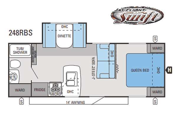Stepping inside the Jay Flight Swift 248RBS by Jayco, you will find this travel trailer quite cozy;