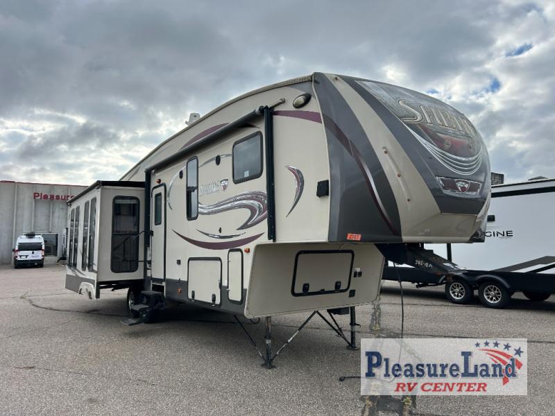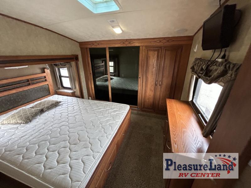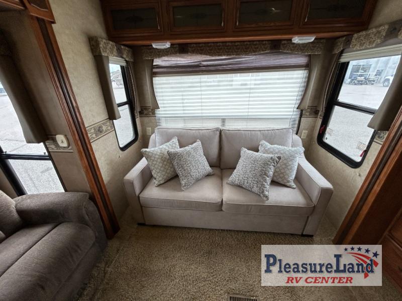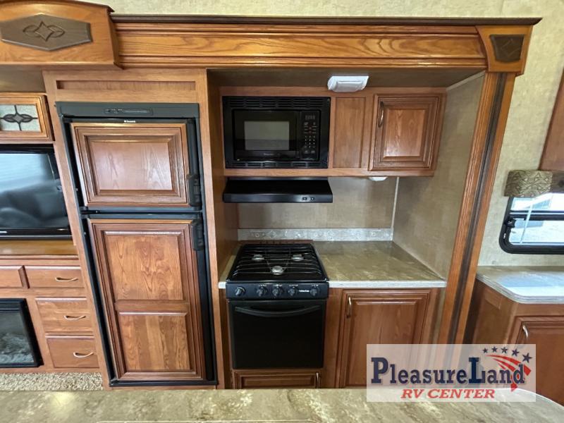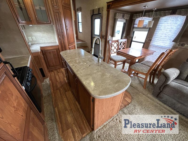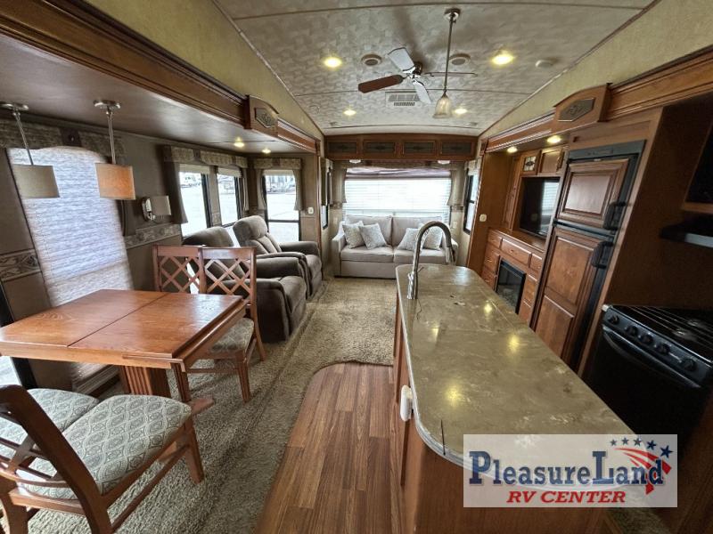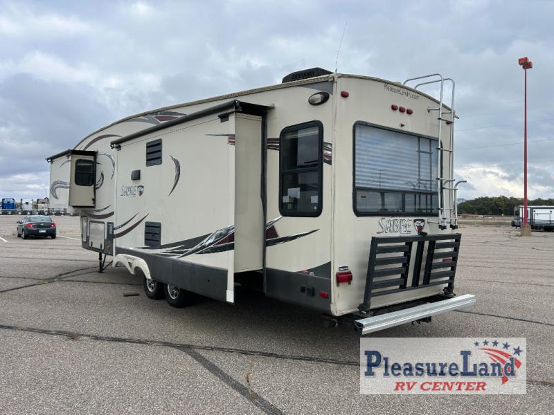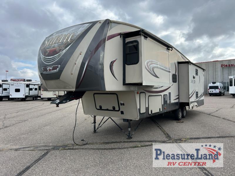 Enjoy the open spacious feel of this Sabre fifth wheel model 33CKTS-6 by Palomino RV featuring triple slides, a kitchen island, and so much more!