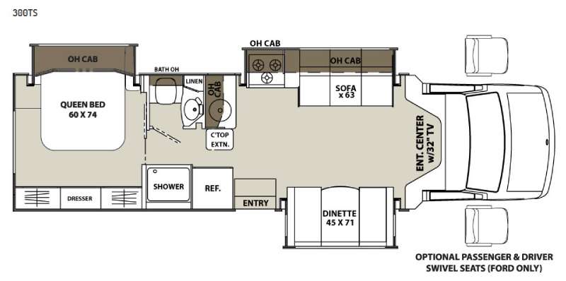 This Coachmen Concord class C motorhome model 300TS offers you spacious living on road worthy wheels. This unit features triple slide outs for added interior space, a complete bath and kitchen for convenient cooking and personal care needs, and so much more.