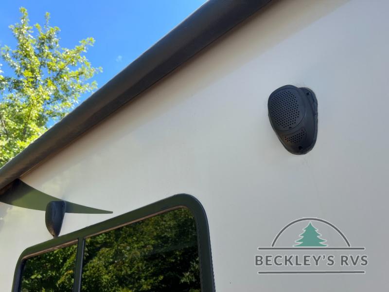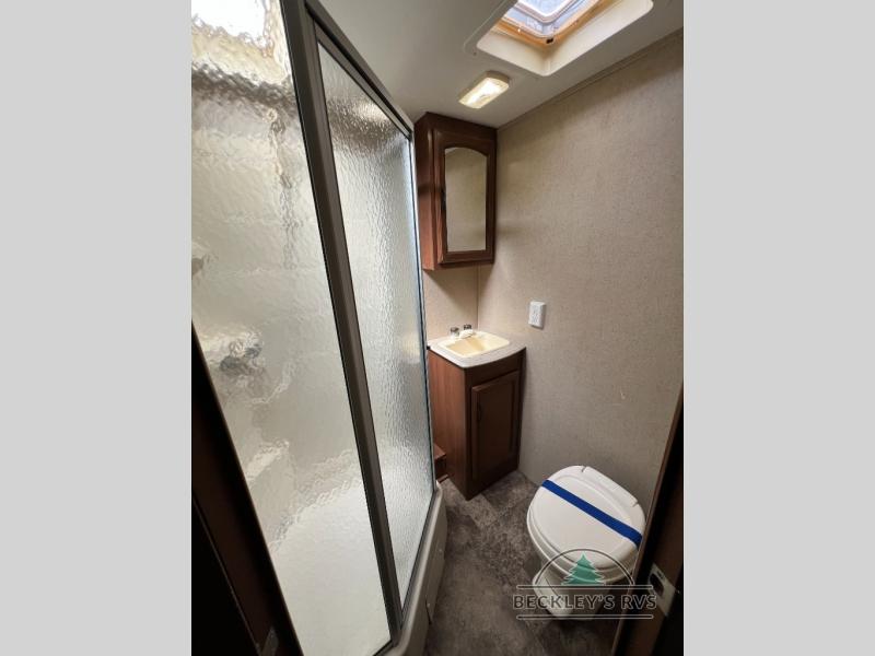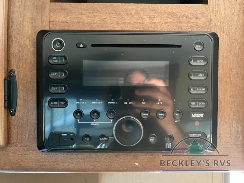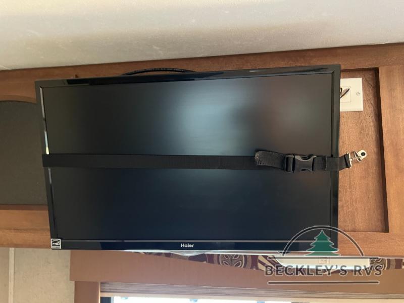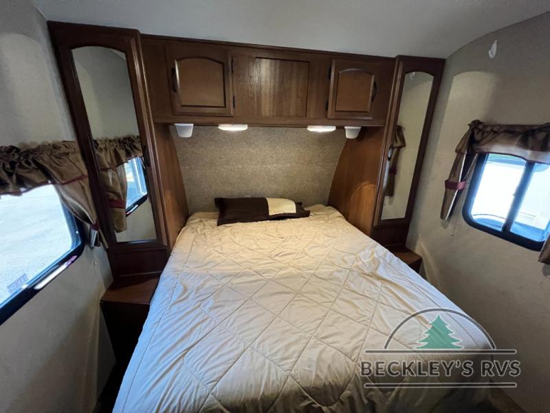 In the front you will see a 60 x 74 queen bed with nightstands and wardrobes, plus it also features a full overhead storage cabinet too. There is also a pass-thru storage up front that can be accessed by two large doors.