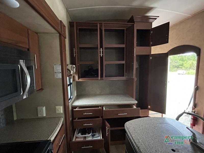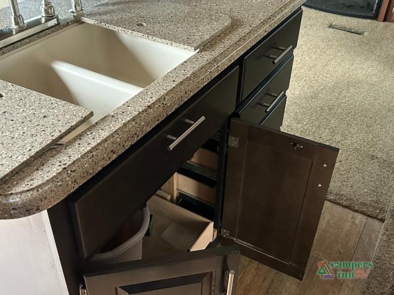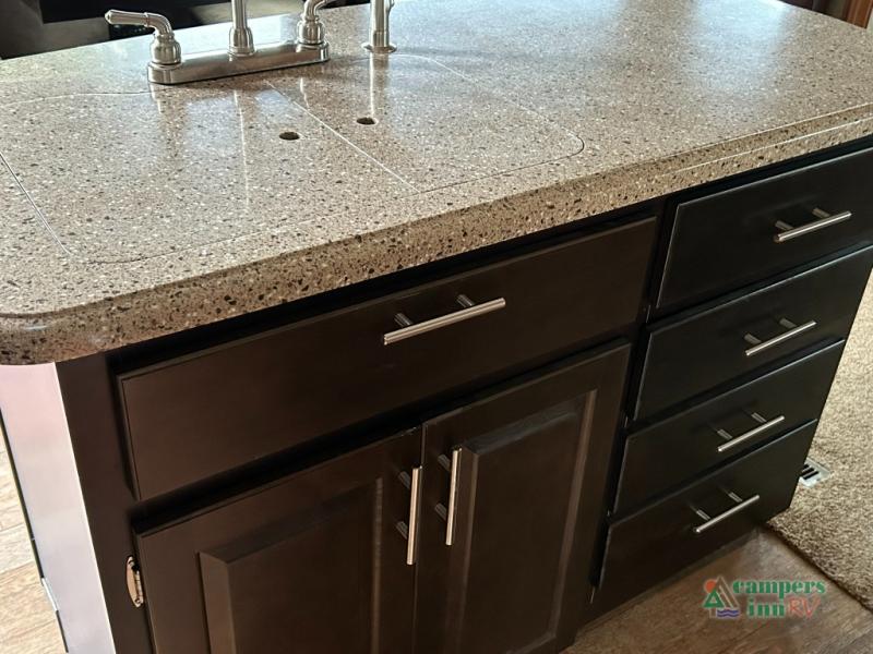 With three well-placed slide-outs, this fifth wheel opens up to create a spacious, residential-style layout—perfect for entertaining, relaxing, or cooking up a meal after a day on the road.
