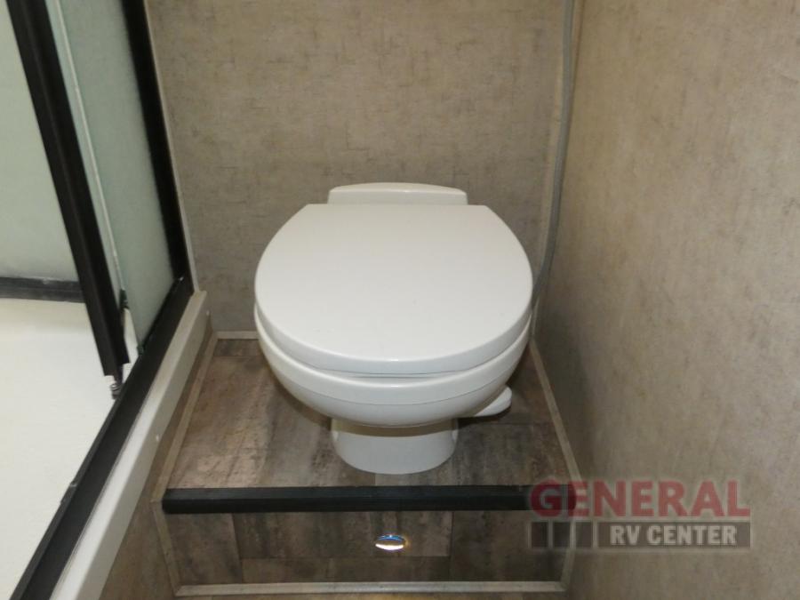 The bathroom has a toilet and shower inside the bathroom area and a sink, just outside of the bathroom area and much more!