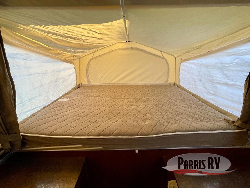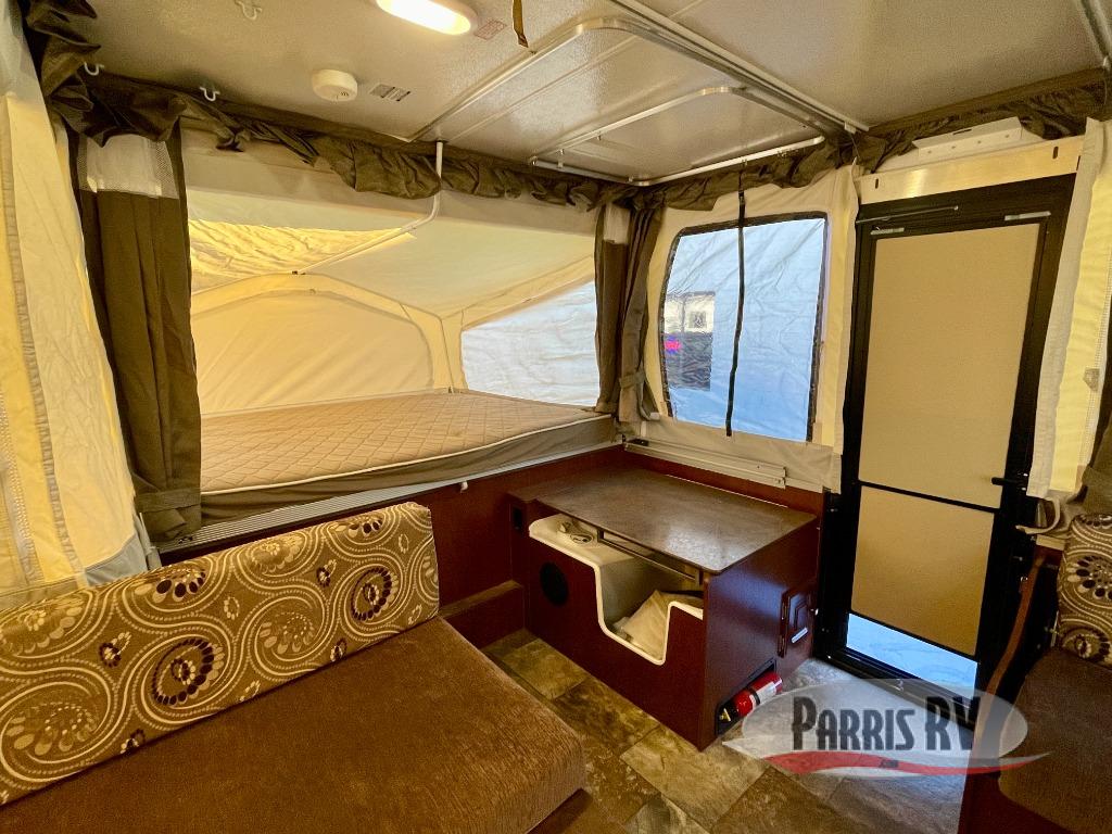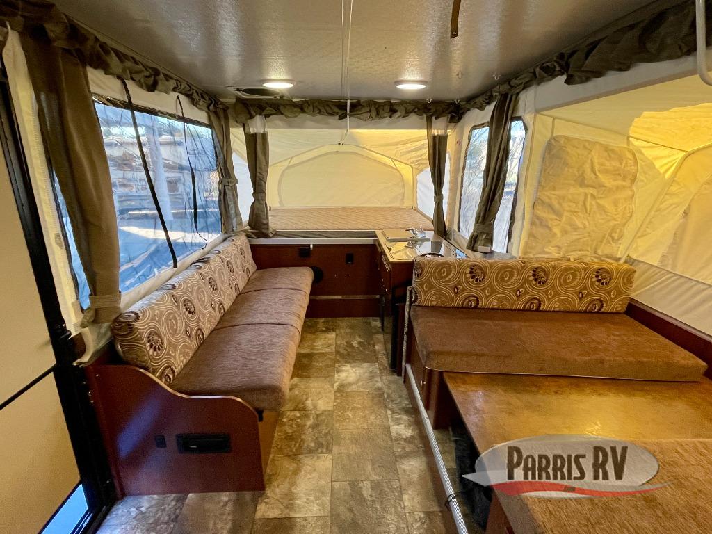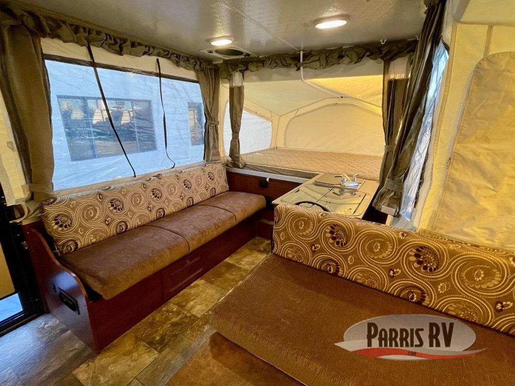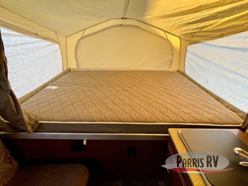 The Rockwood Premier 2516G offers a single slide out and tent end beds for extra space to maneuver inside this folding pop-up camper.