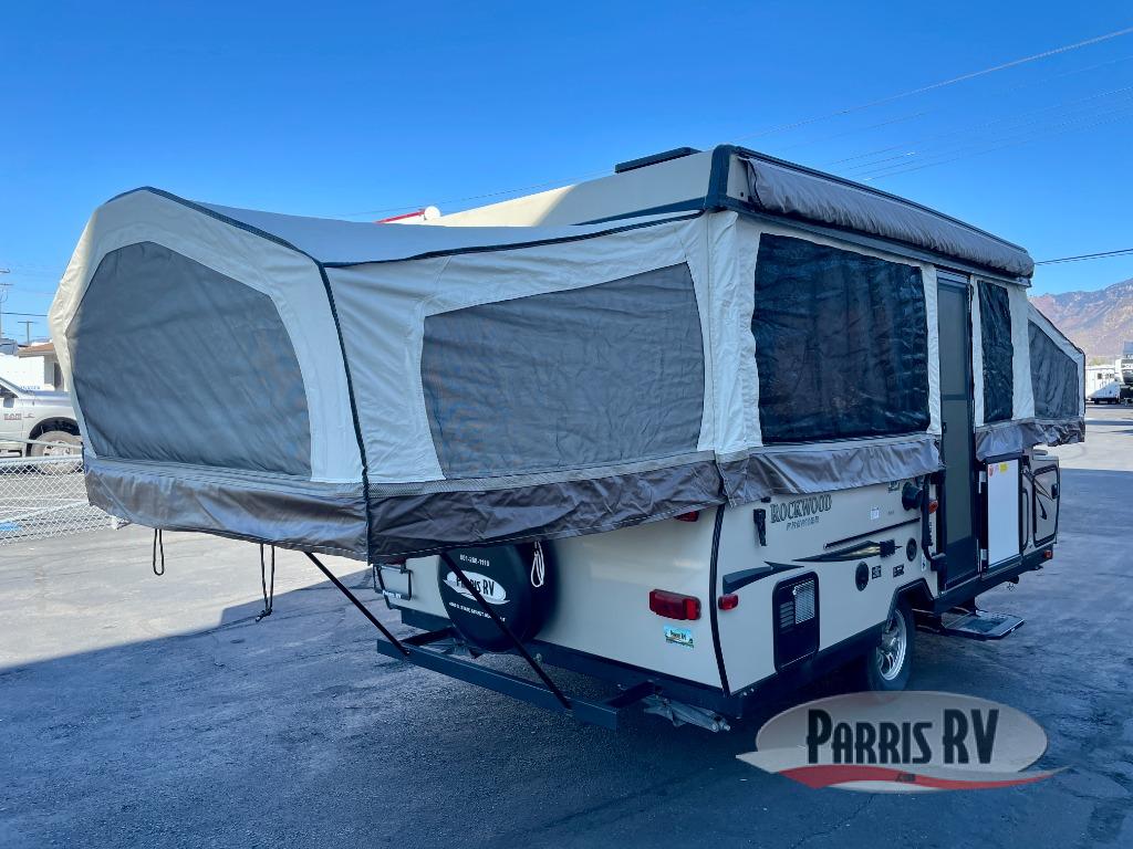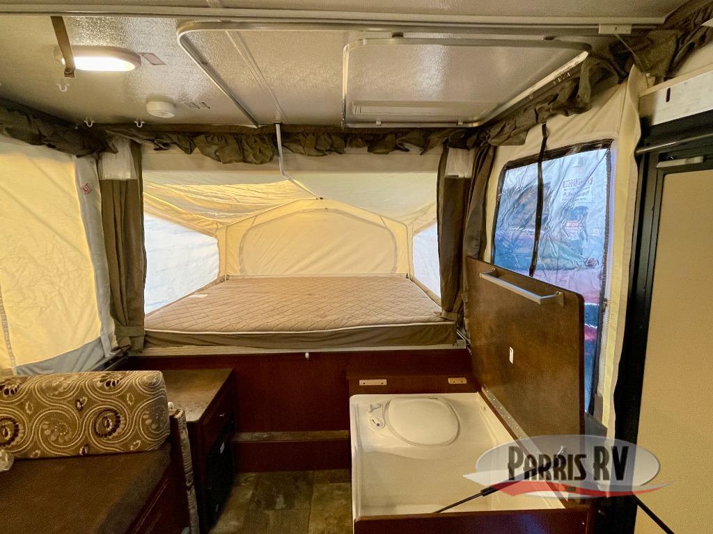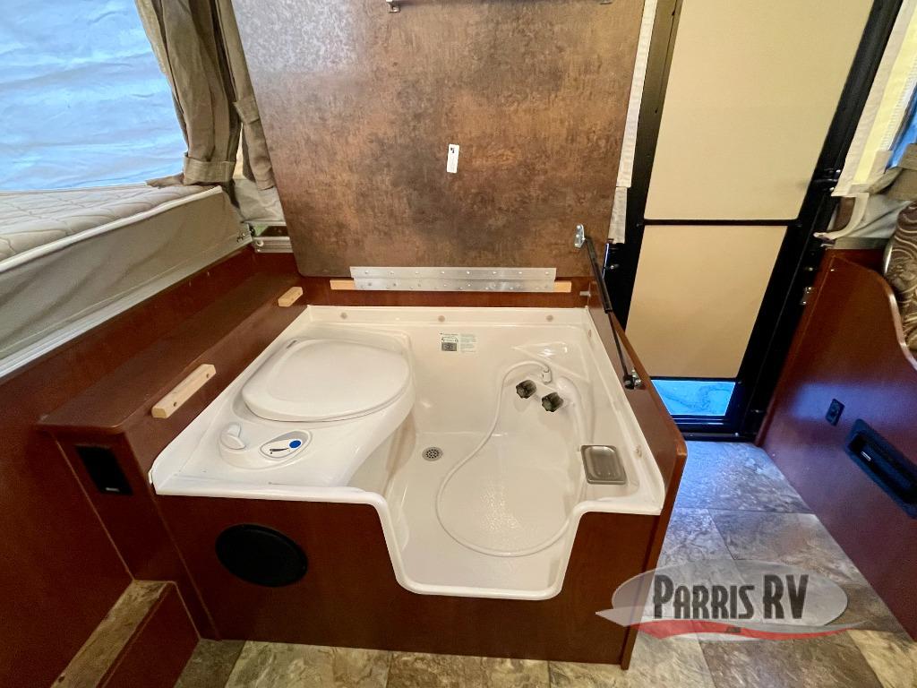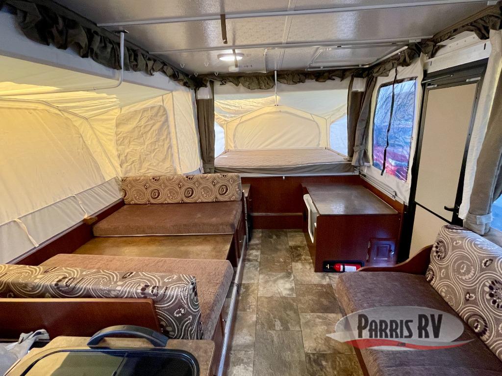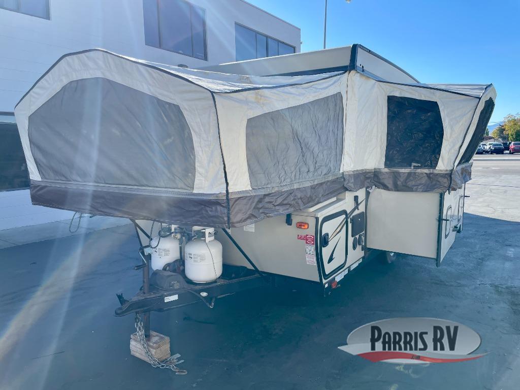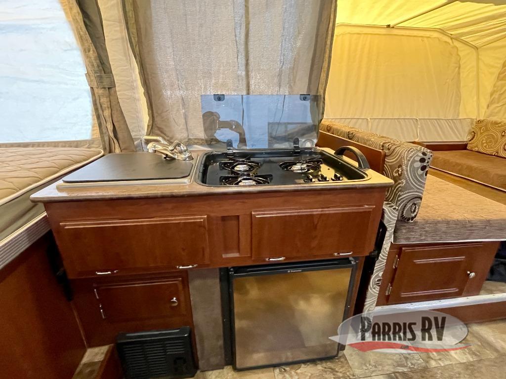 The Rockwood Premier 2516G offers a single slide out and tent end beds for extra space to maneuver inside this folding pop-up camper.