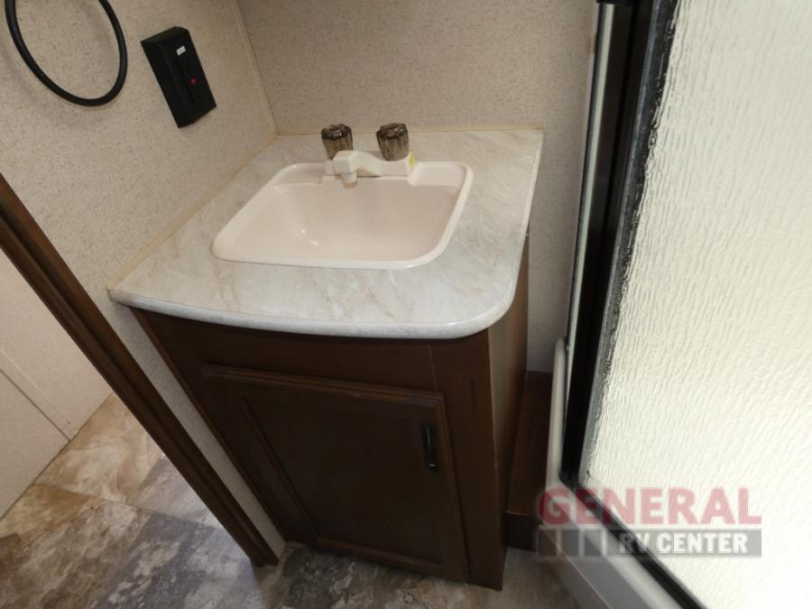 There are plenty of overhead cabinets throughout the 33RLDS as well as exterior storage.