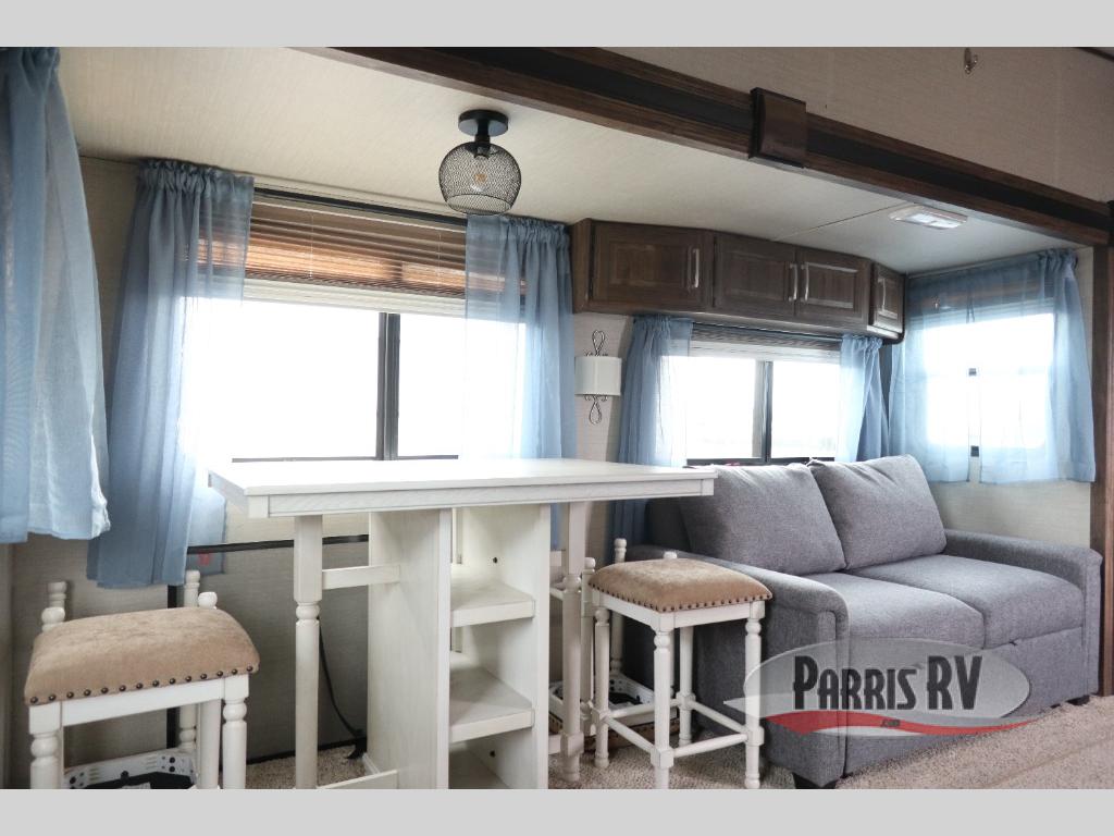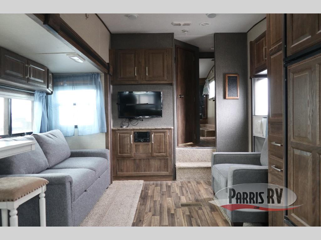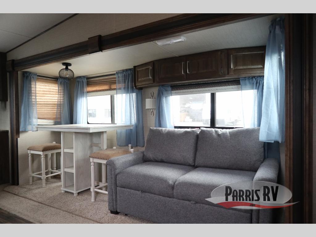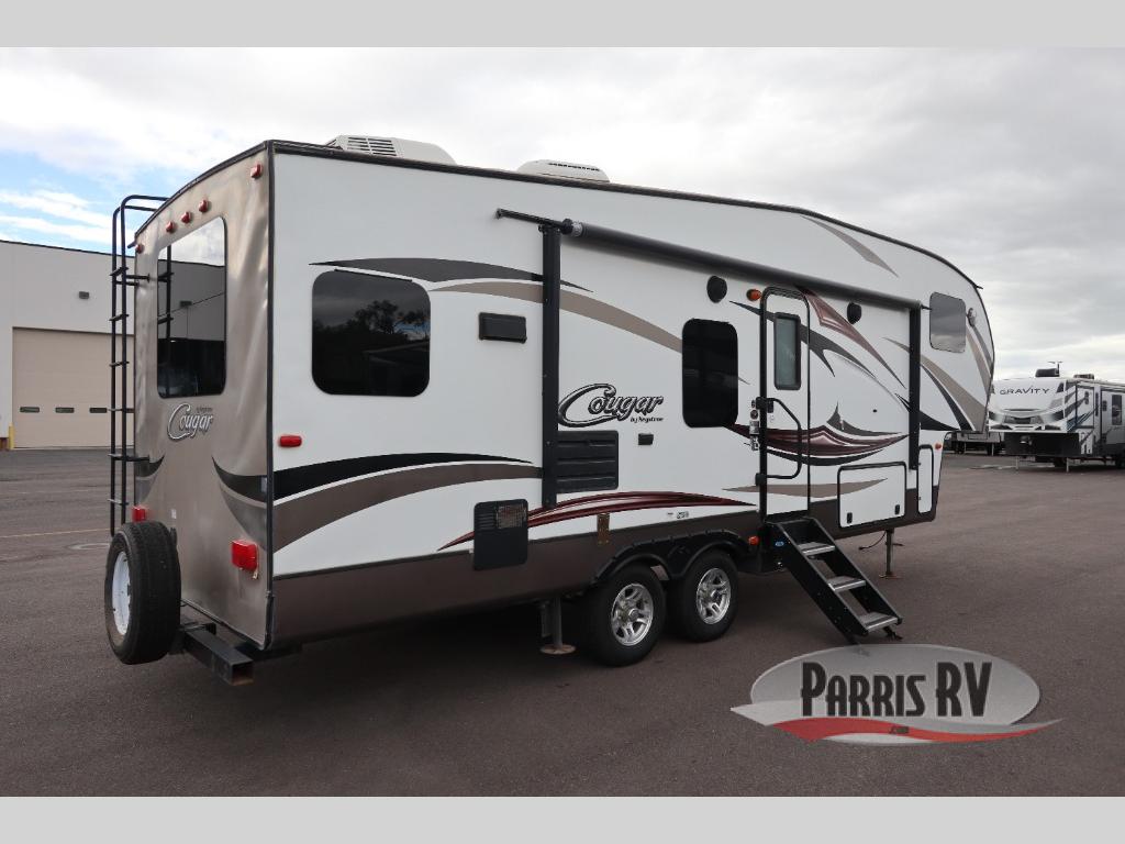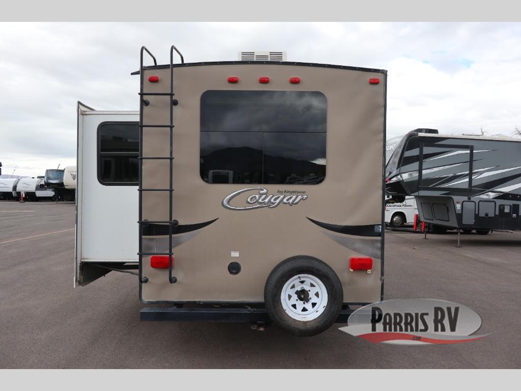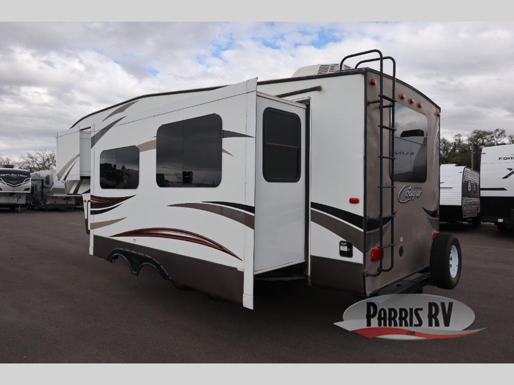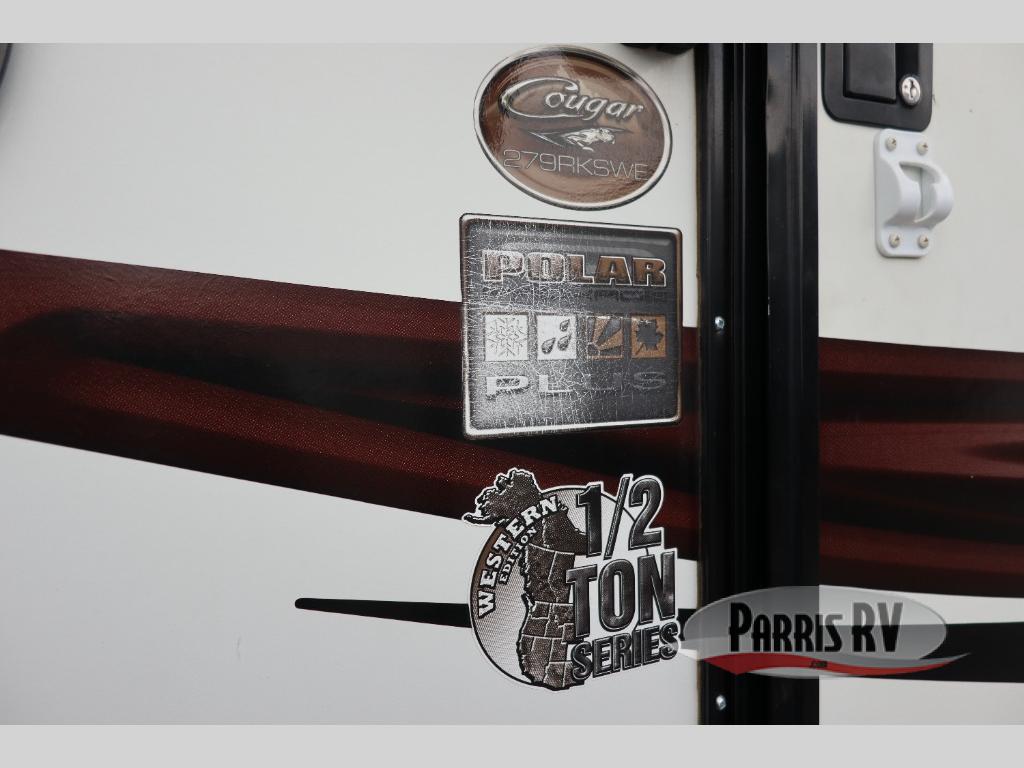 Spacious and convenient are two words to describe this Cougar 1/2 Ton series fifth wheel by Keystone RV. As you enter model 279RKSWE you are instantly greeted by a wide open combined kitchen and living area which includes a large slide featuring a sofa and u-shaped dinette.