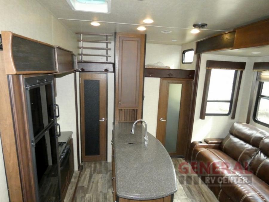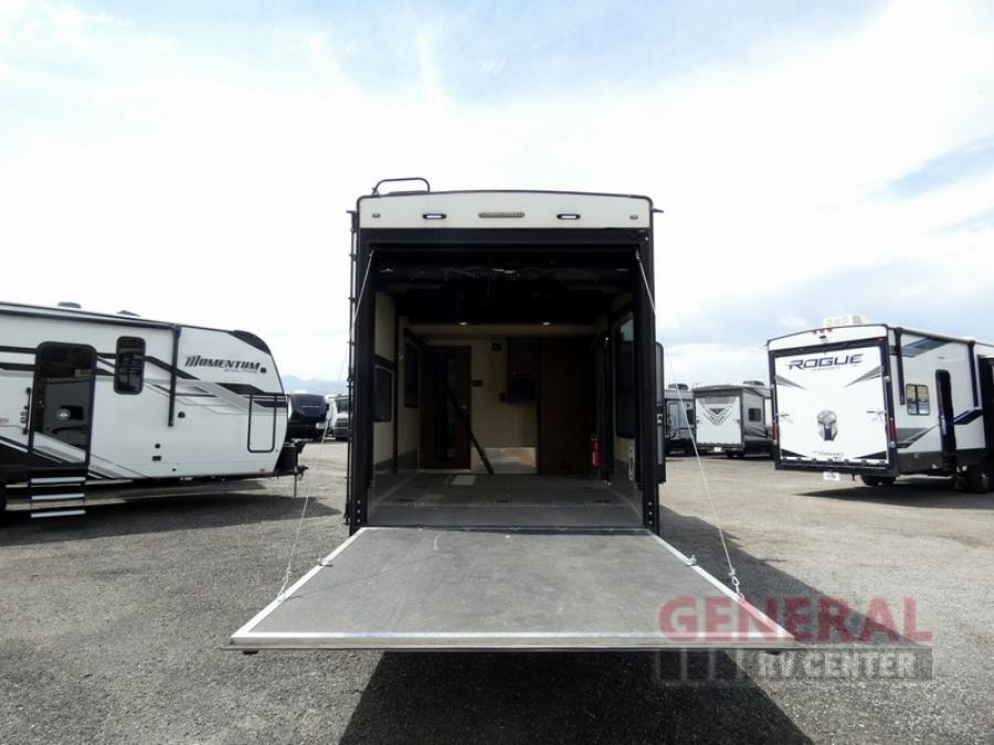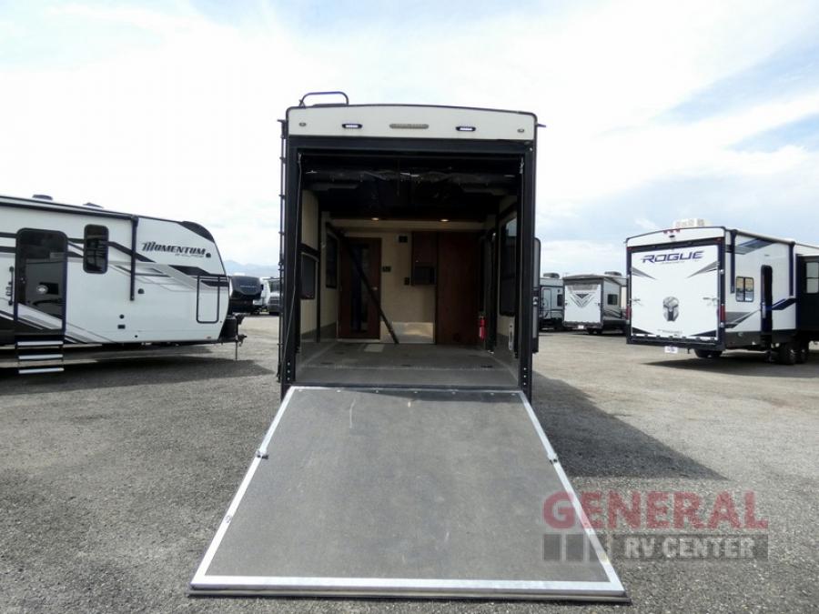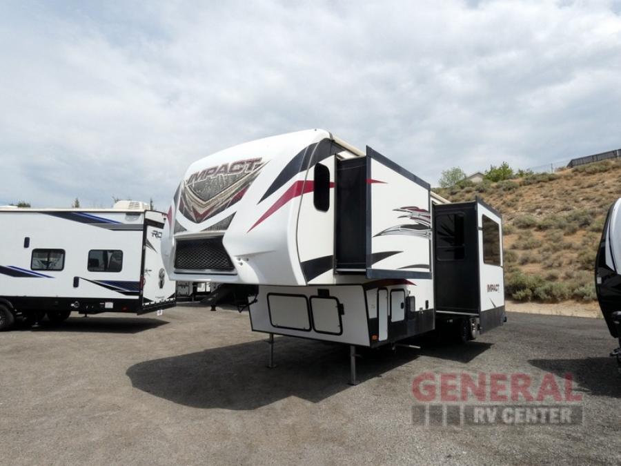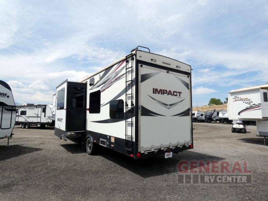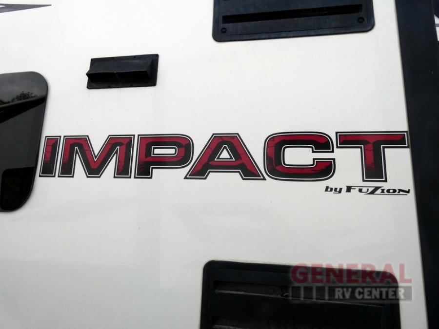 This Keystone Impact toy hauler fifth wheel has plenty of space for you and a few friends, as well as a few of your favorite toys! Model 341 features a 12' garage, and a living area with triple slides of added floor space, and more!