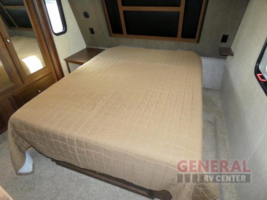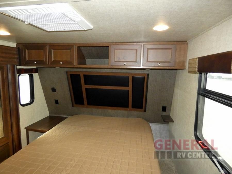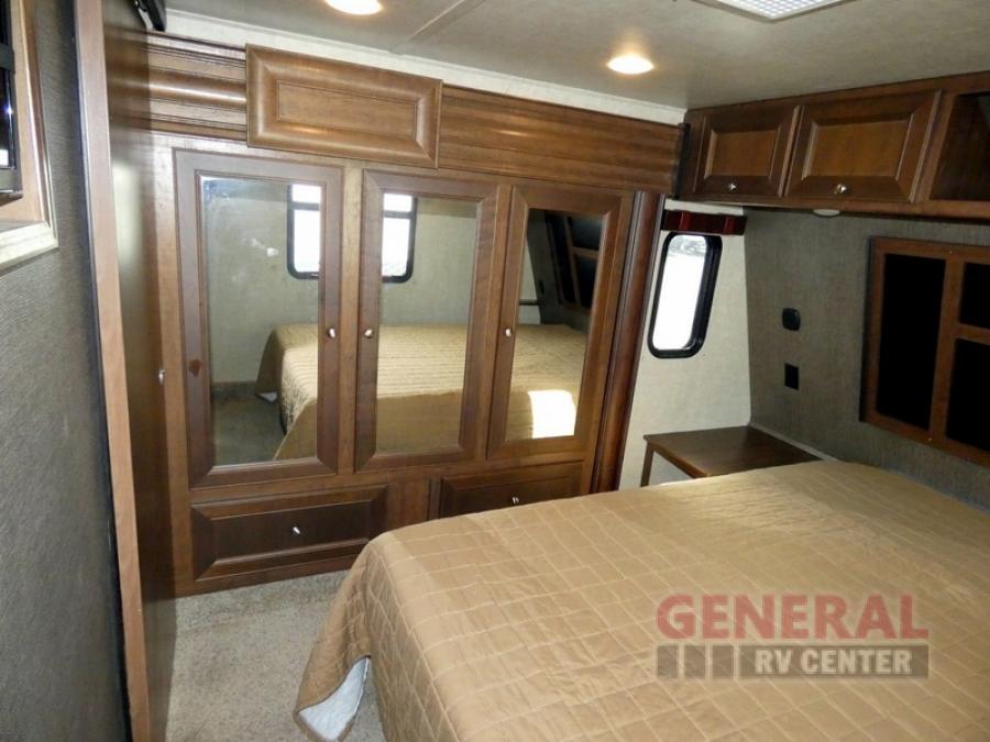 You can also access the bedroom from the hall where you will find a queen bed straight ahead when you walk in. There is a nightstand on the right and storage closet on the left, plus the slide out wardrobe/linen closet. There is also a flat panel TV mounted to the wall opposite the bed, plus so much more!