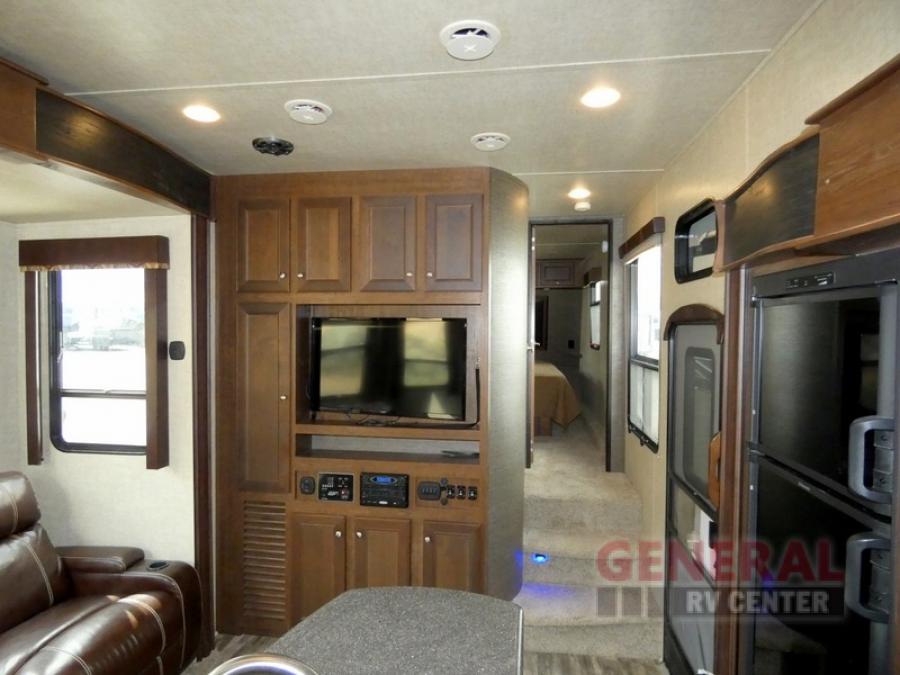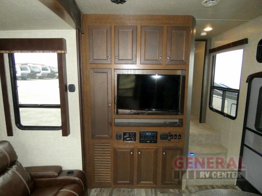 Opposite the door enjoy a large sofa slide out and a nearby 40" TV entertainment center that you can easily view.