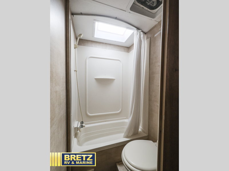 In the rear of this Springdale find a set of double bed bunks with an angled inside corner on both. A nice bathroom is opposite and features a tub/shower, toilet, and separate sink, plus so much more!