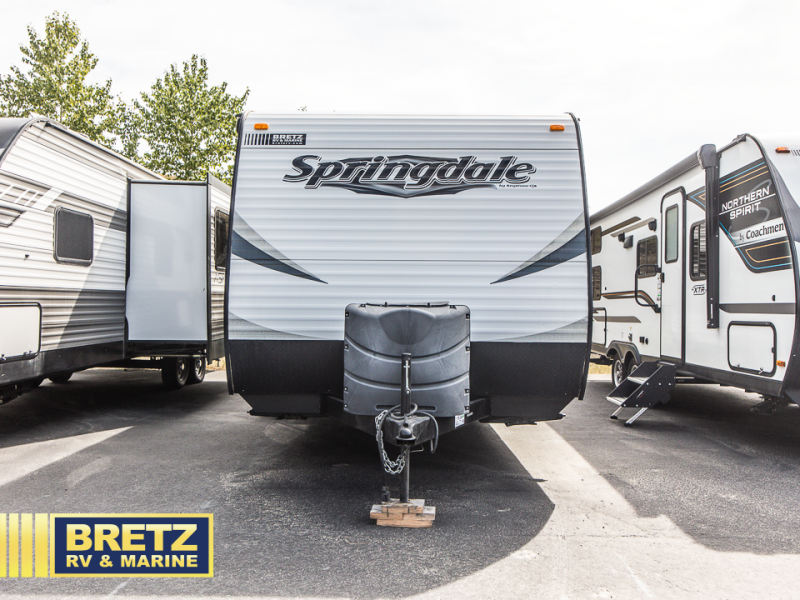 Take the whole gang camping in this Keystone Springdale model 260LE and enjoy! This unit offers double bed bunks, a rear bath layout, and many conveniences of home.
