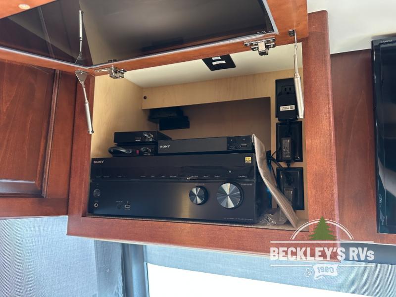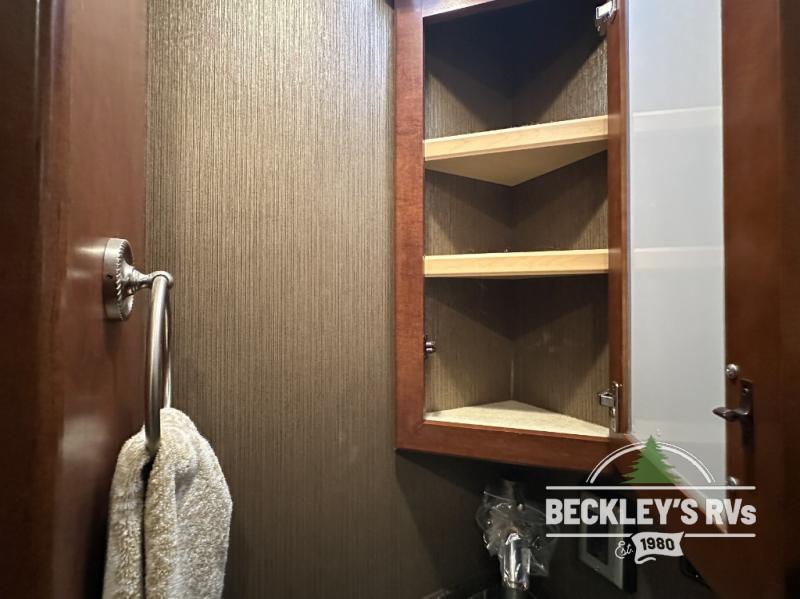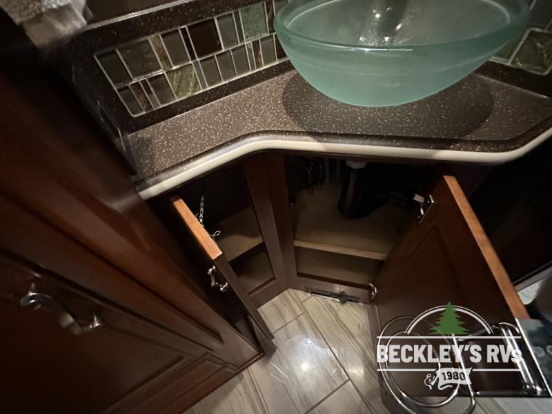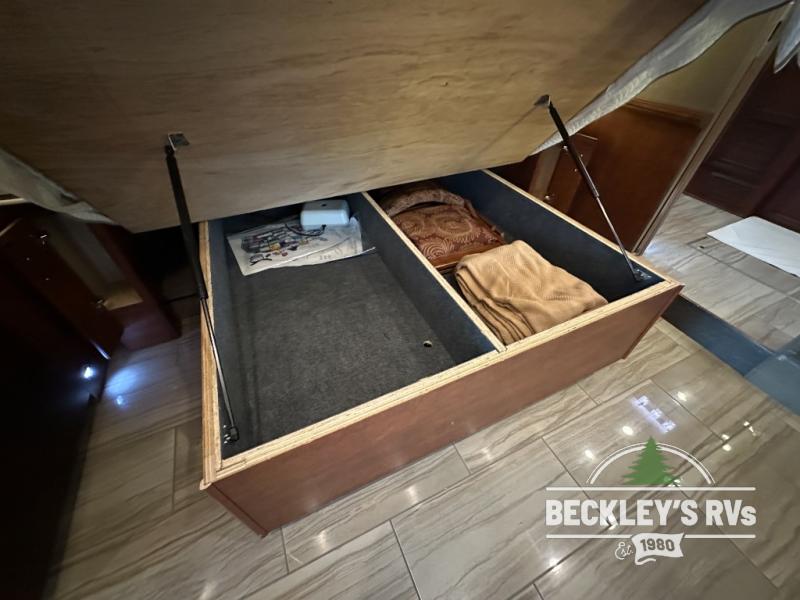 There are plenty of overhead cabinets throughout the motor home. You can even choose an optional washer and dryer.