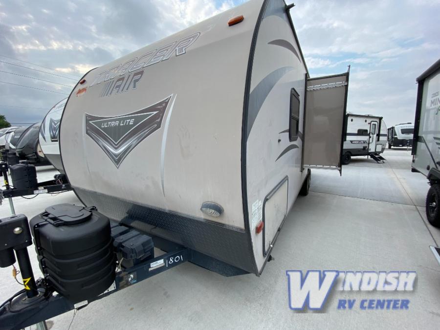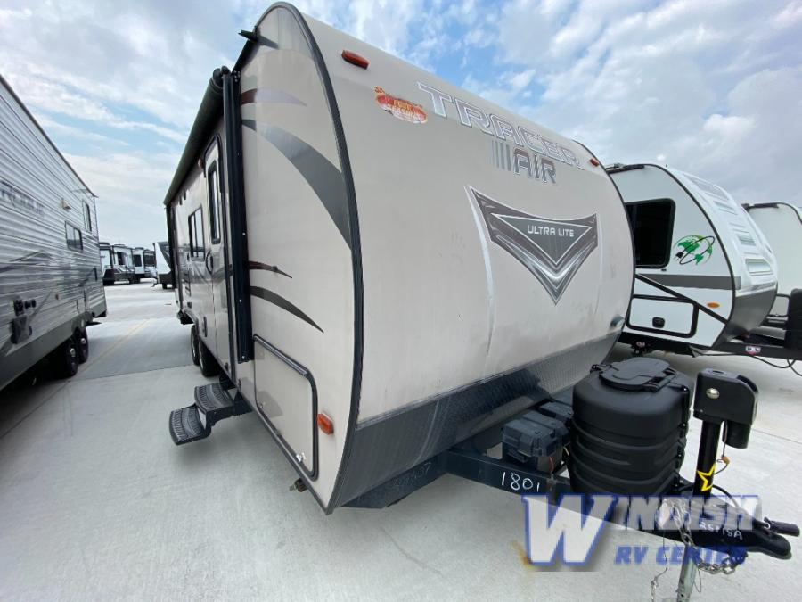 The 250AIR Tracer travel trailer by Prime Time features a rear bunk house, u-shaped dinette, and a single slide.