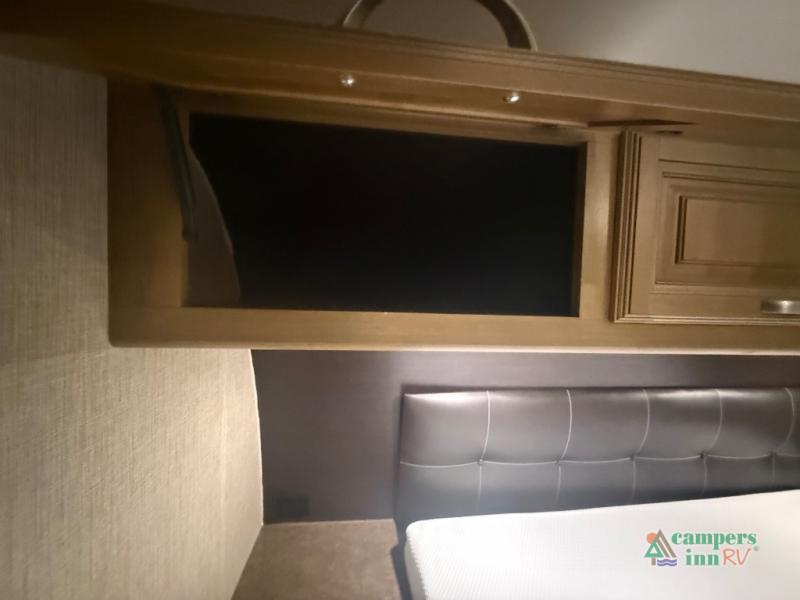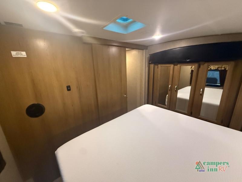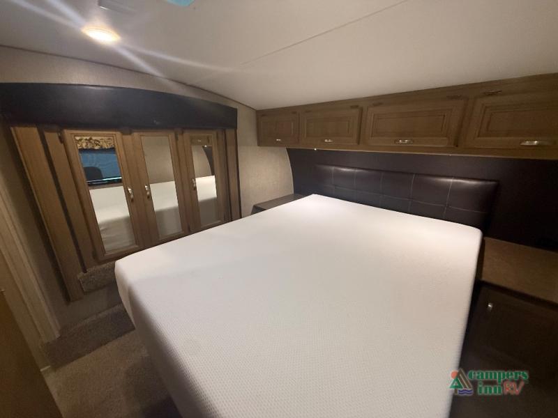 The front bedroom greets you with a queen bed with shirt closets on either side, and a wardrobe slide which provides additional storage.