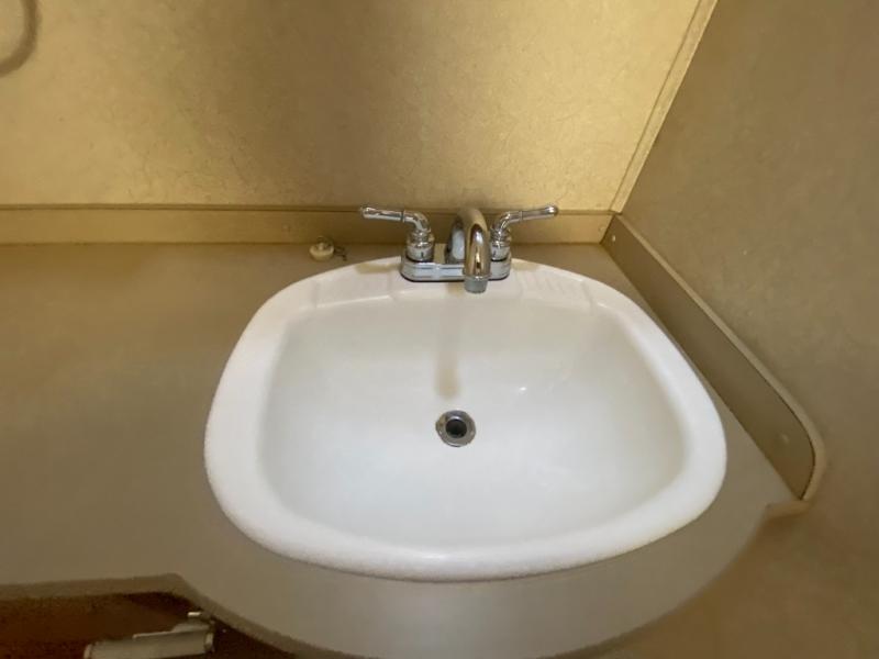 You will find that the bathroom is split with a shower on one side of the motor home. Across from the shower there is a private toilet area with a sink.