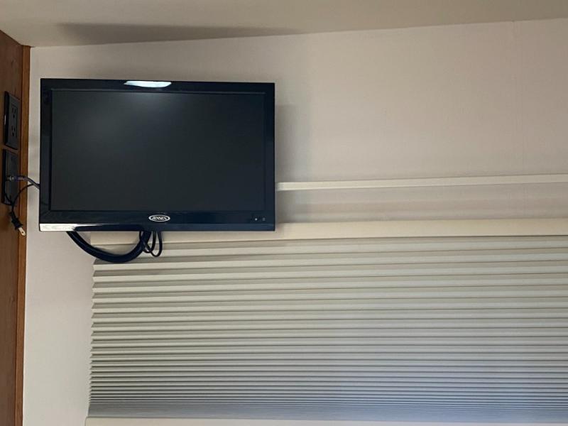 In the rear bedroom you will find a queen bed with wardrobes on either side of the bed. Along one wall there is a 19" LED TV with a swing arm.