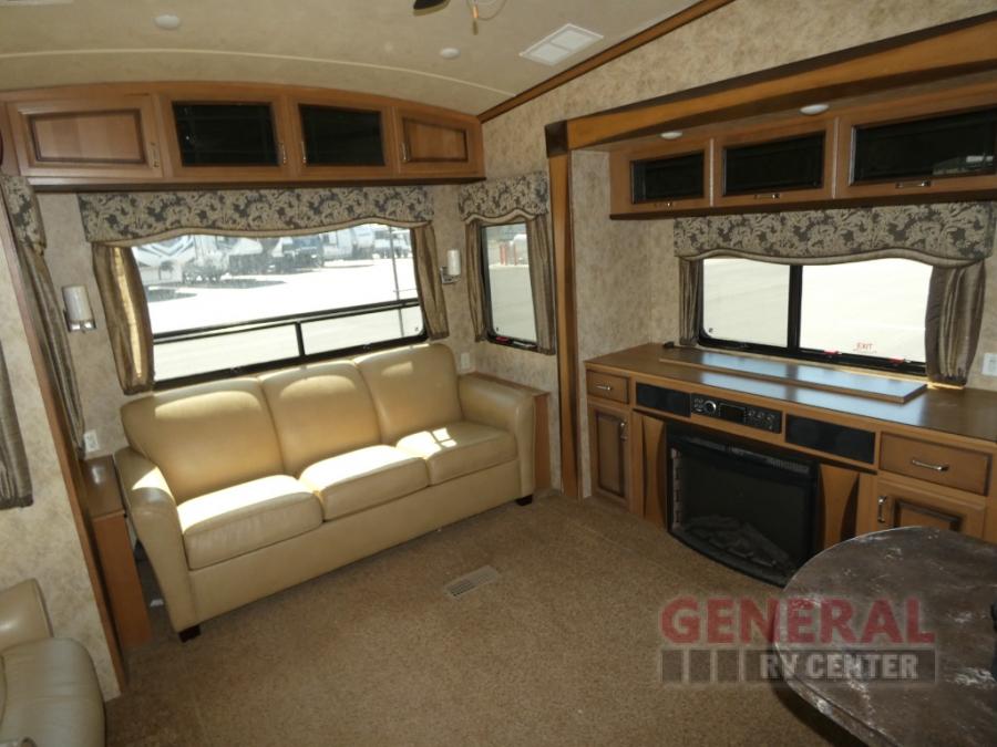 This triple slide Cedar Creek 36CKTS Fifth Wheel by Forest River offers spacious living accommodations for all the comforts of home.