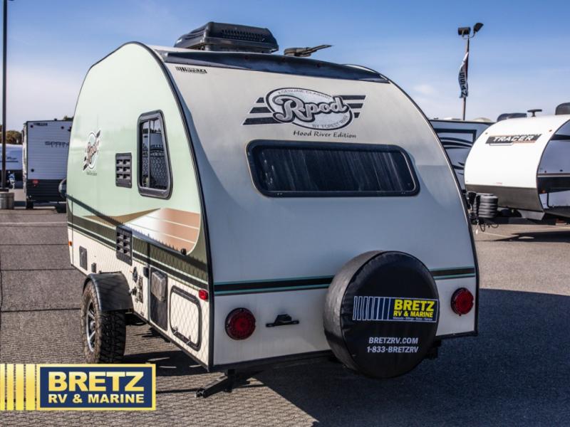 The R-Pod RP-172 travel trailer by Forest River offers a rear U-shaped dinette.