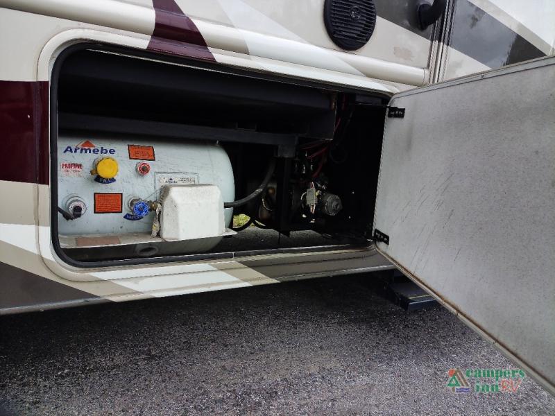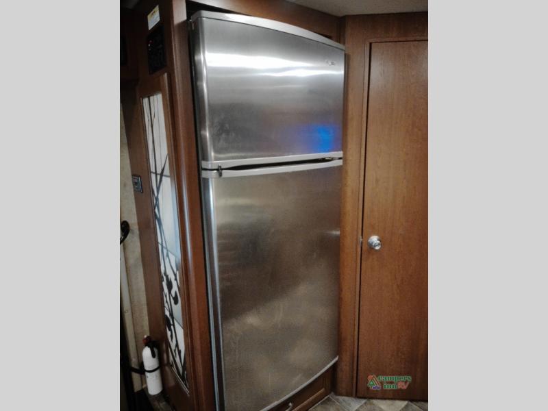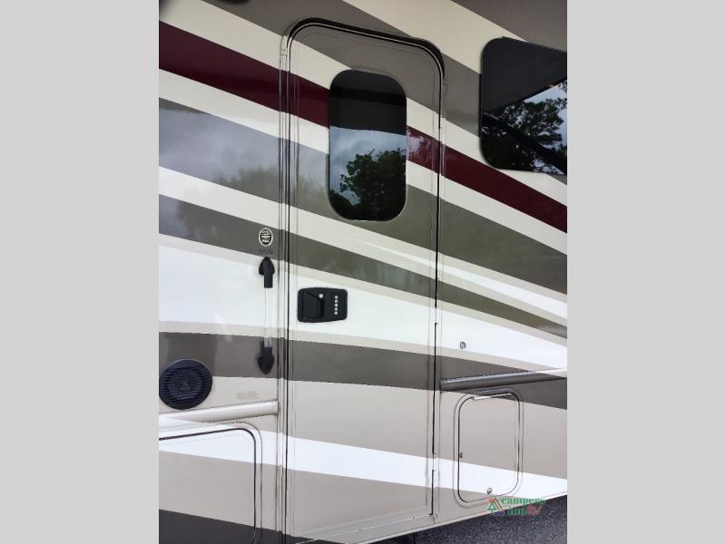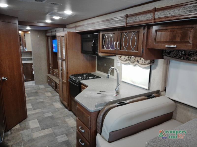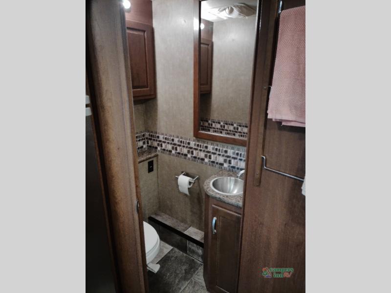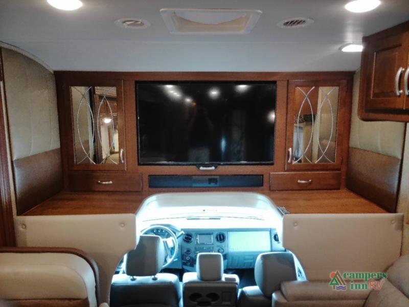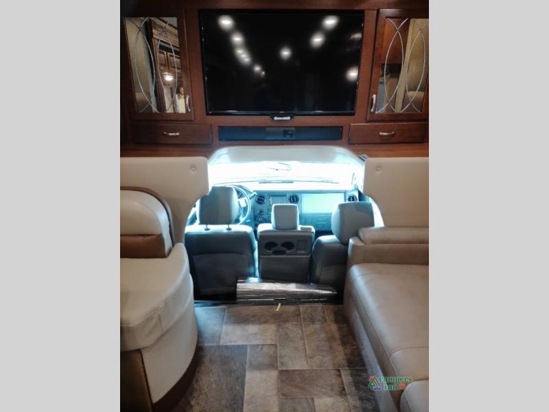 This Four Winds Super C 35SF diesel motorhome features a rear bath and a half bath, a full wall slide along the driver's side, plus additional sleeping area to bring along some friends!