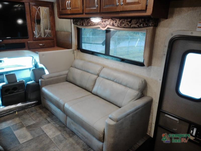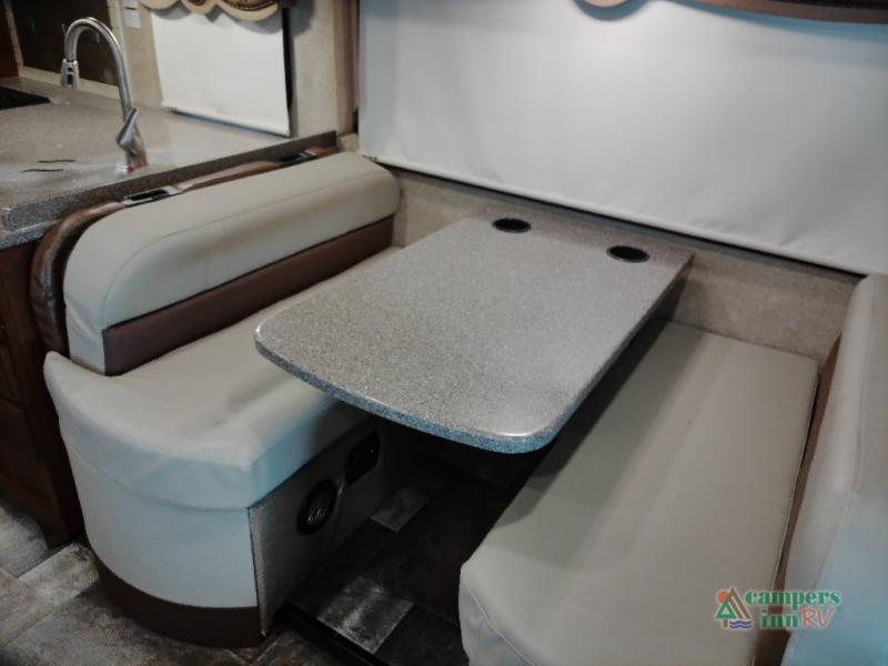 As you enter notice how spacious it is with the slide fully extended on the drivers side. There is a 42" x 65" sofa which converts into sleeping space at night. Opposite find the beginning of the full wall slide with a dream dinette that is perfect for dining.