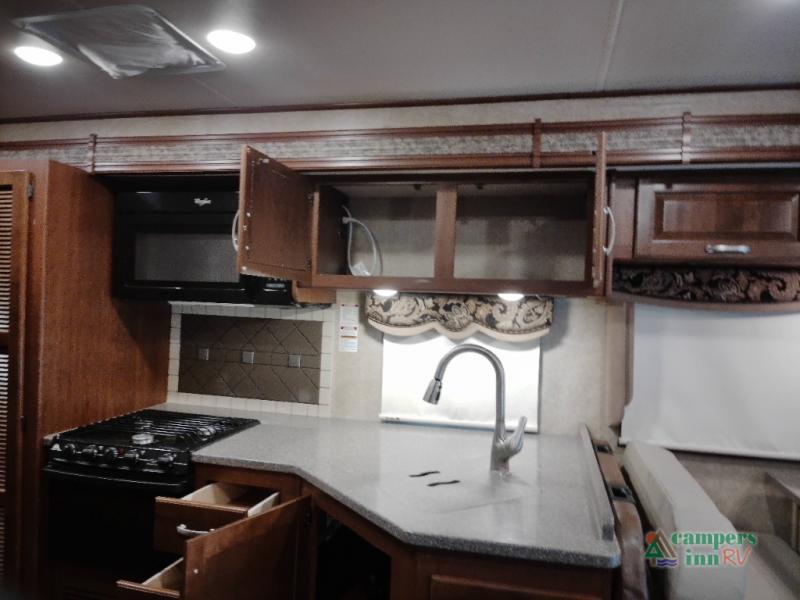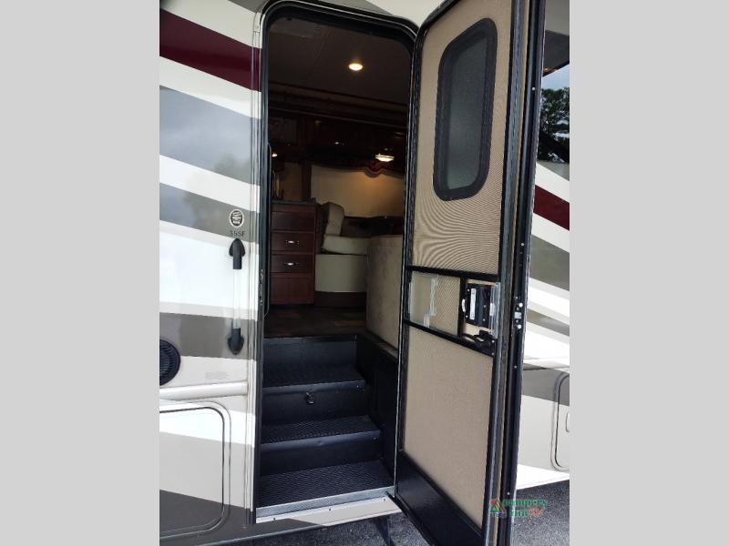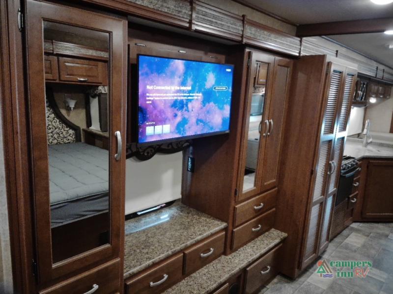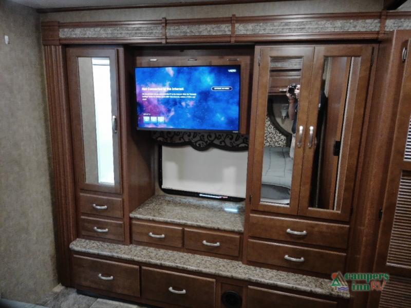 You will also love the outdoor 32" LED TV when relaxing outside, and the overhead cab-over bunk inside that features a 54" x 85" sleeping area. There is also a 40" LED swivel TV for easy viewing in the main living space, plus so much more!