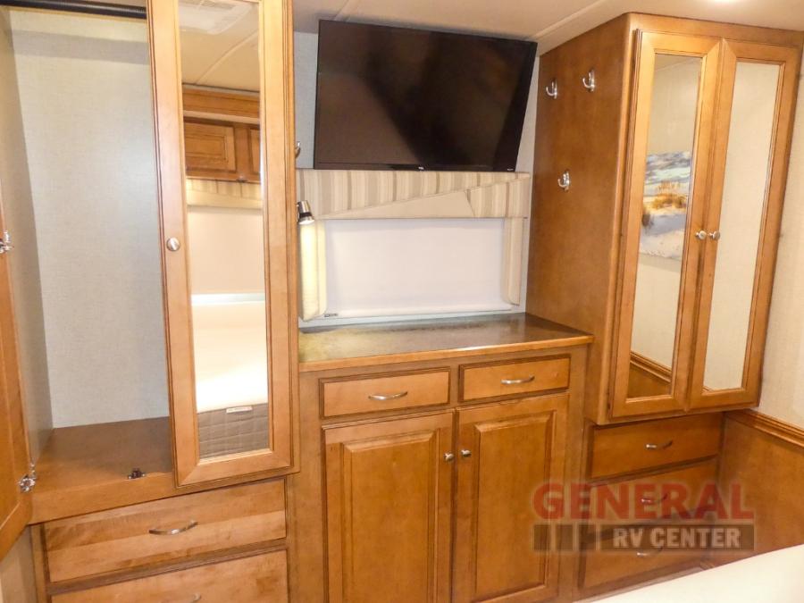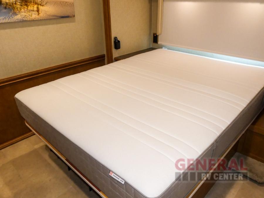 A folding door gives the rear bedroom a bit of privacy. There you will find a queen bed slide with nightstands and overhead storage, plus wardrobes and a storage cabinet with TV location between, and so much more!