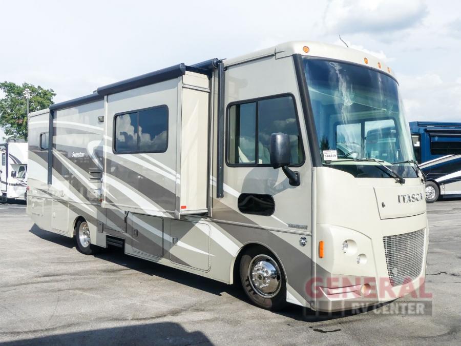Itasca Sunstar motor home 30T features triple slides for added interior space, sleeping for six, and all the amenities you need while traveling.