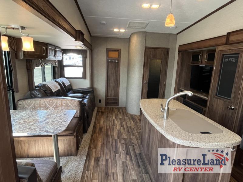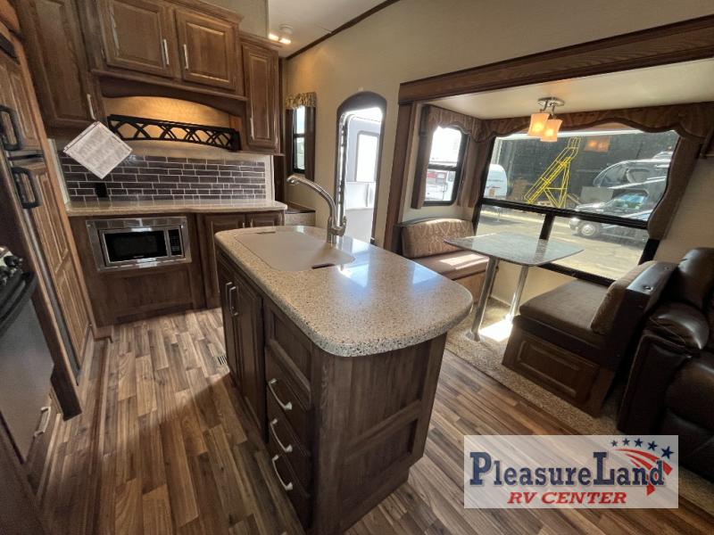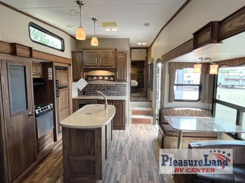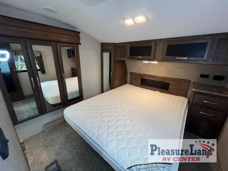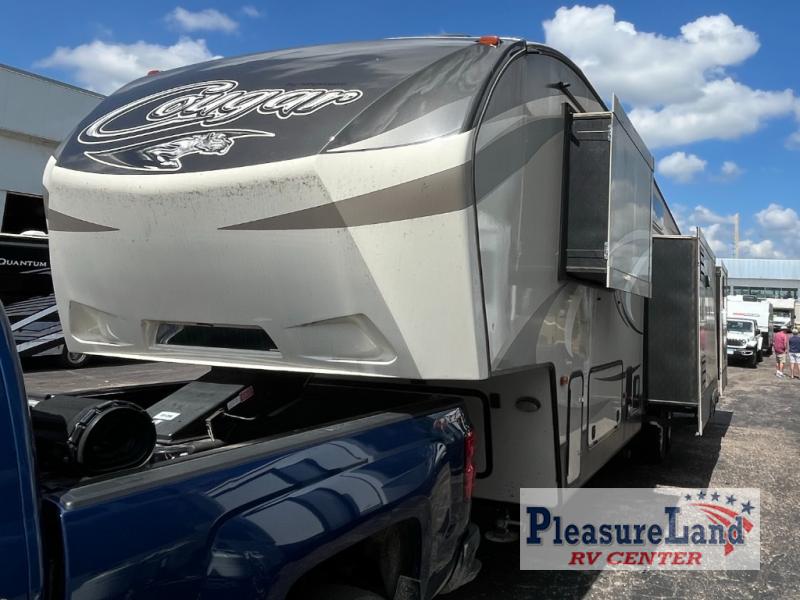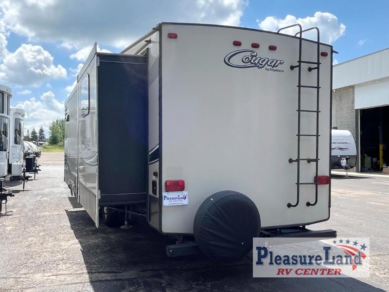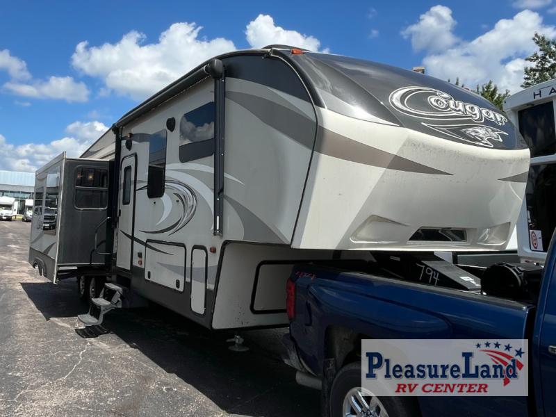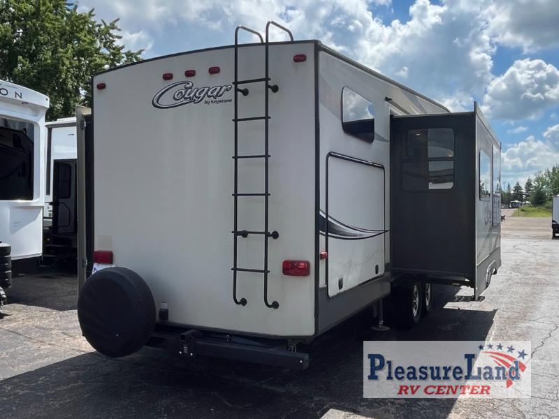This Keystone Cougar fifth wheel features quadruple slides to give you ample room inside for the whole family. Model 336BHS offers a private bunkhouse, a spacious combined kitchen and living area with dual opposing slides, a convenient kitchen island, and more!