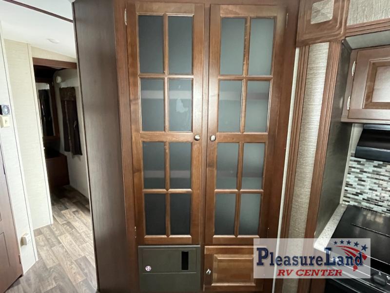 There is no lack of storage on the inside of this trailer, and the outside features a pass through compartment with access on either side, plus an outdoor kitchen, and so much more!