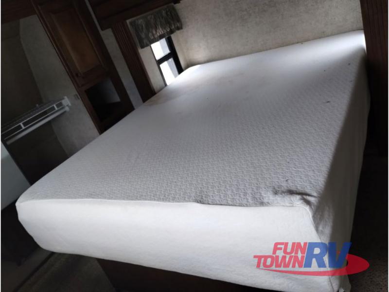 The private front bedroom features a slide out residential queen bed with overhead storage on the opposite side, and a full front wardrobe with sliding doors, a closet, and so much more!