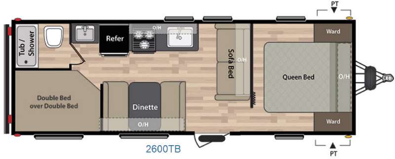 Step inside this Springdale Summerland travel trailer 2600TB and see just how convenient your camping can be. There is sleeping space for eight, and all the amenities needed to make traveling fun.