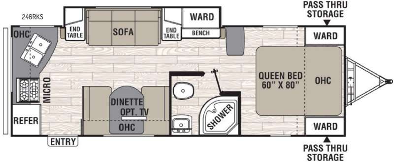 Rear-kitchen layout: The 246RKS features a full kitchen in the back of the trailer — ideal for cooking, entertaining and simplifying traffic flow inside.