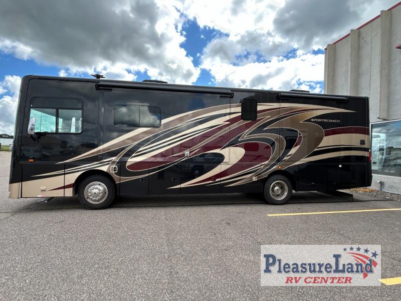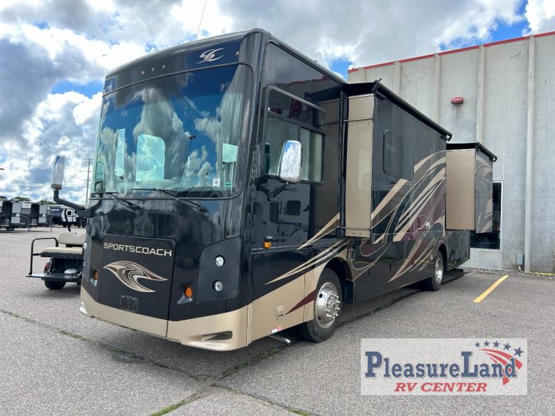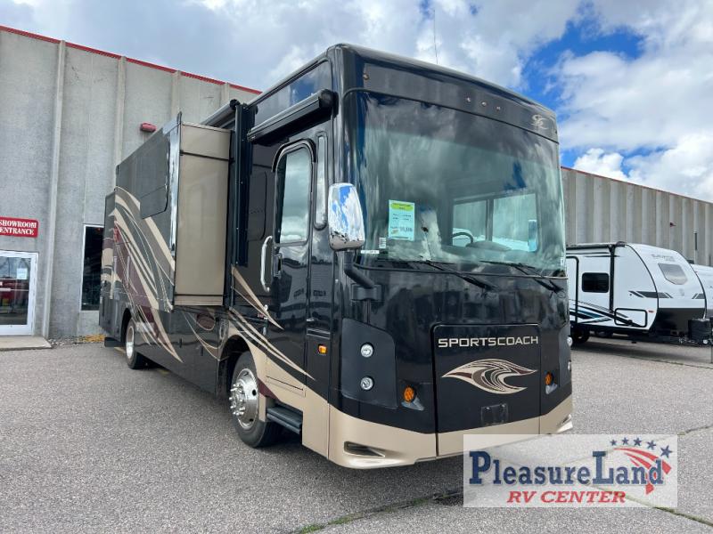 If you have been looking for a king bed slide out for more sleeping space, a split bath for convenience, and a total of three slides for more interior room, then step inside this Coachmen RV Sportscoach Cross Country SRS class A diesel motor home.