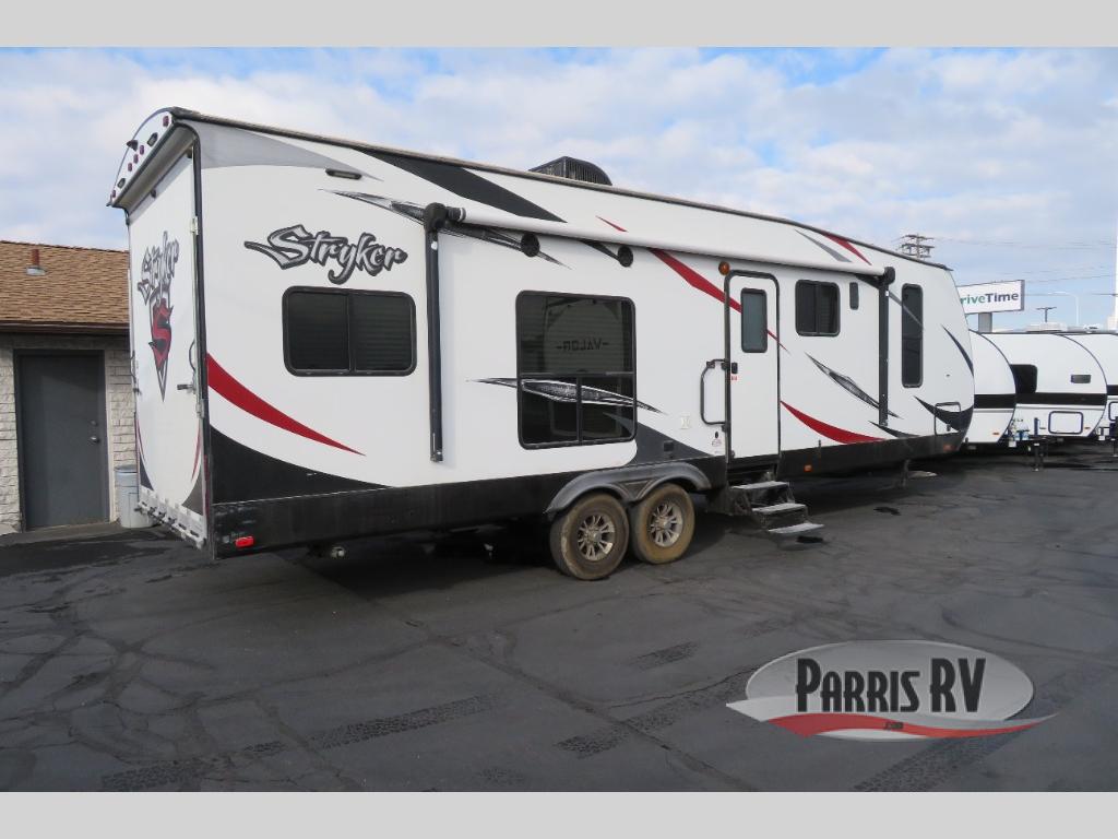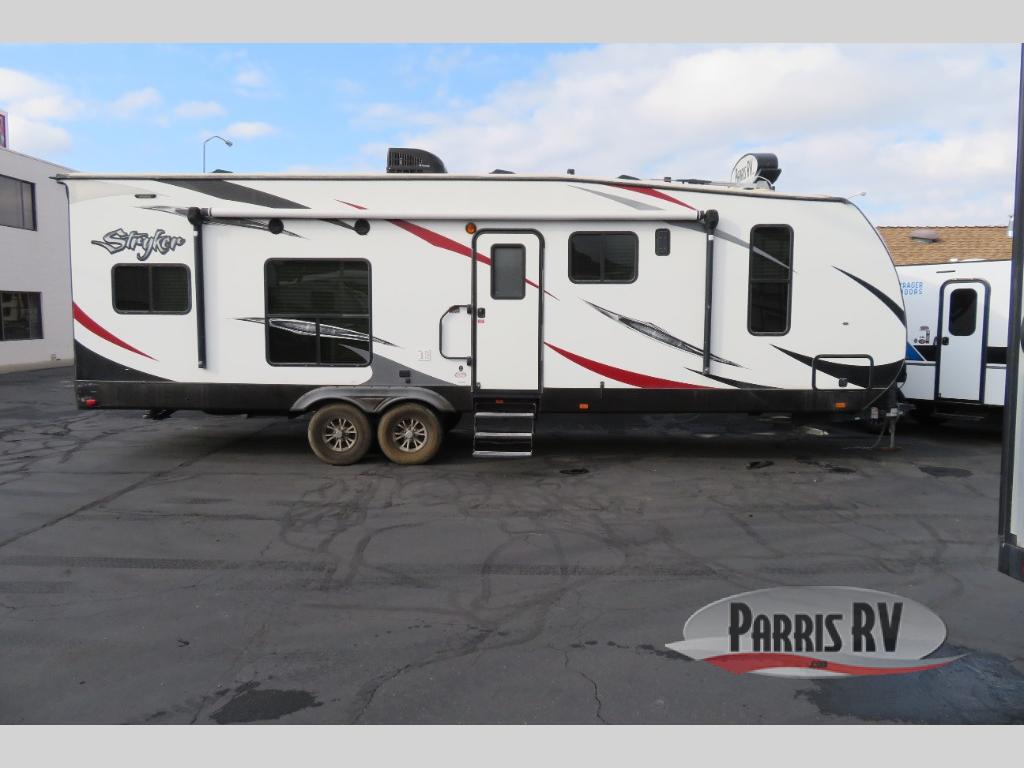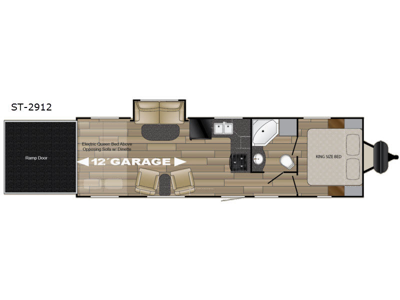 You are sure to enjoy your next toy hauling adventure in this Crusier Stryker ST-2912 toy hauler travel trailer. There is a KING size bed, single slide out, dual entry bath, plus much more!