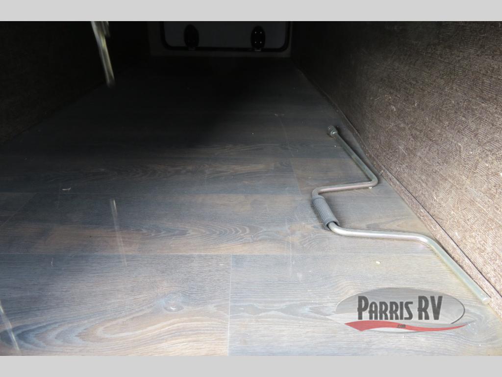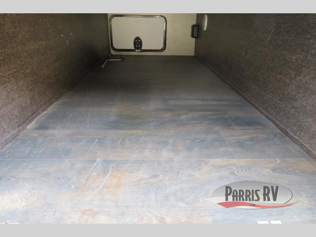 The rear ramp door makes loading and unloading a cinch. With the fold up sofa tucked away and the swivel rockers moved into the hall up front you will have 12' garage space up to 16'3" of toy parking space. Once you reach your destination and the toys are removed you can easily configure the space to allow for so much more living space inside.