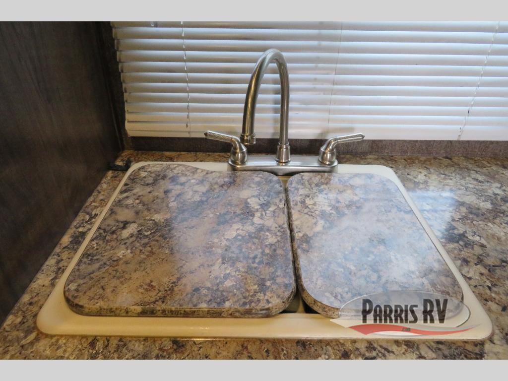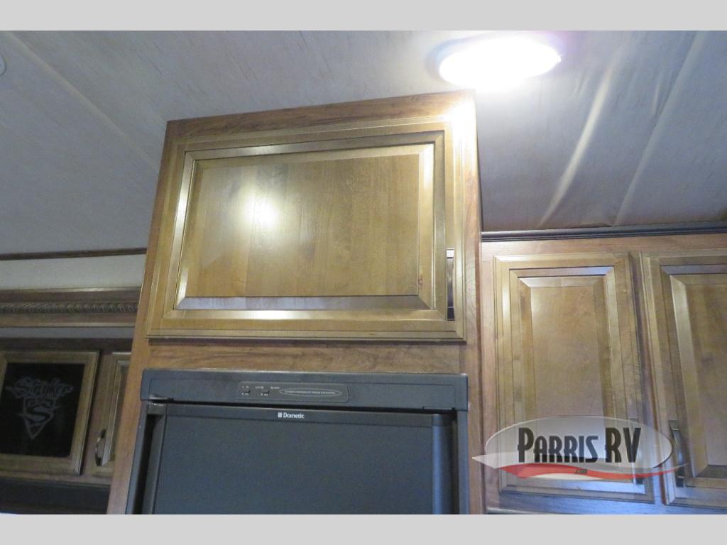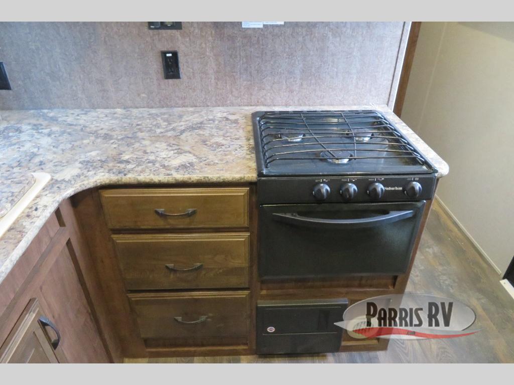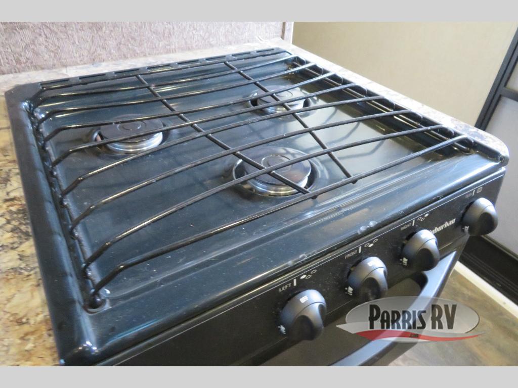 Cook up all of your meals and snacks easily in the Stryker kitchen which features a refrigerator, double sink, counter space, three burner range, and microwave oven, plus ample storage for all of your dishes and things.