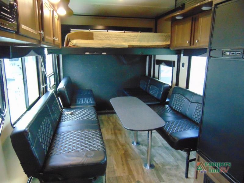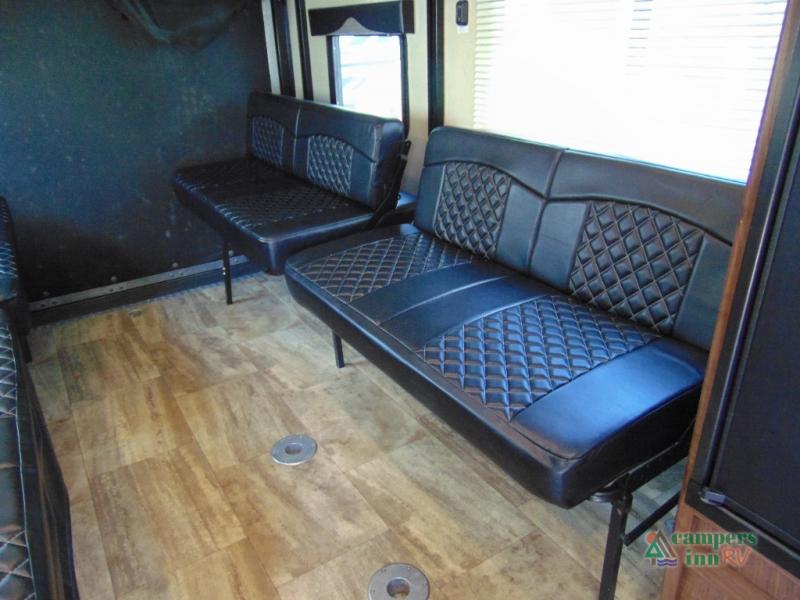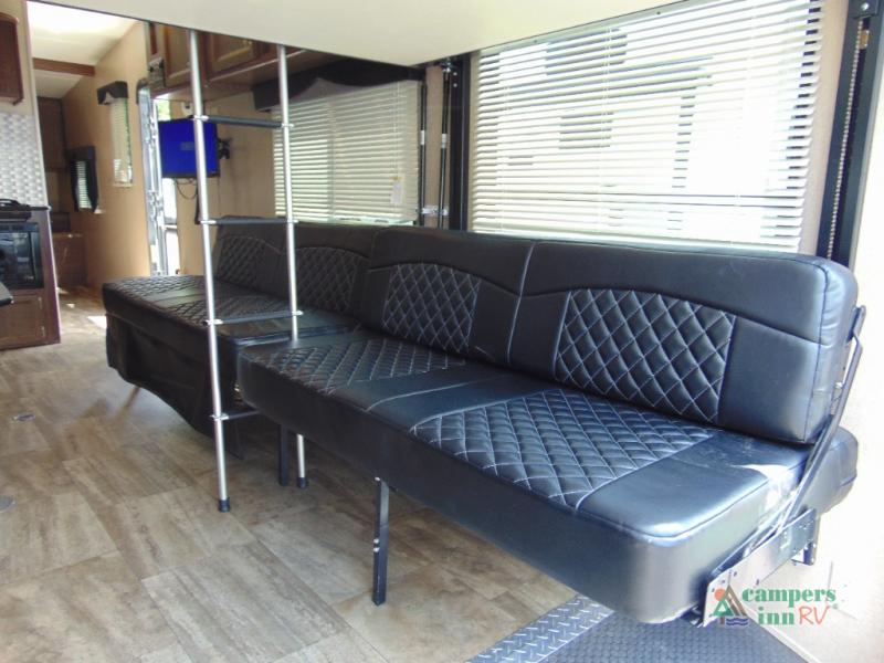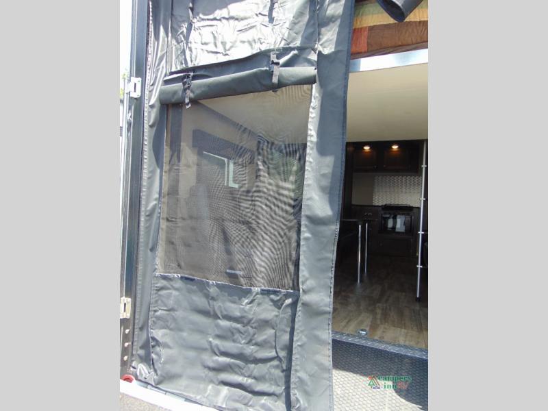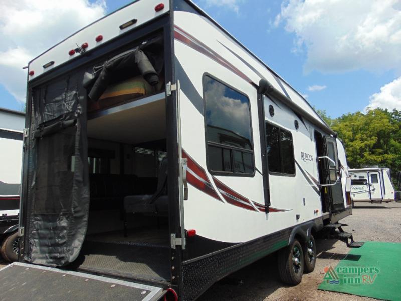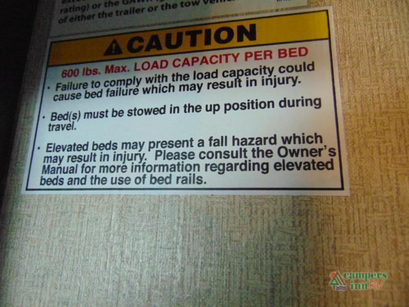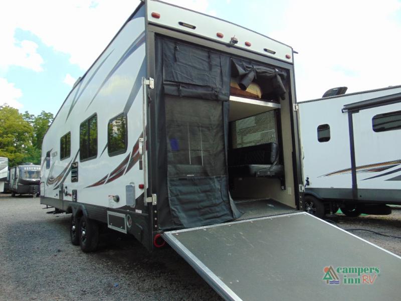 THIS RV INCLUDES PRIORITY RV SERVICE NETWORKLoad your toys and gear easily with the rear ramp spring assist door. Once inside the cargo area you will find dual rollover sofas with a HappiJac power bunk above that stores neatly up at the ceiling when not in use. This allows for the whole gang to sit and relax and catch their breath before the next ride, plus it adds more sleeping space at night.