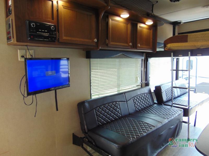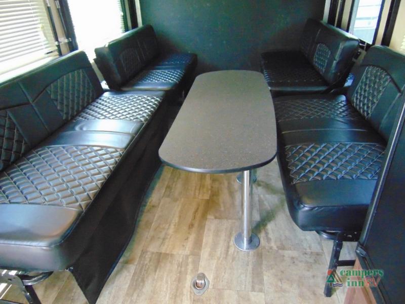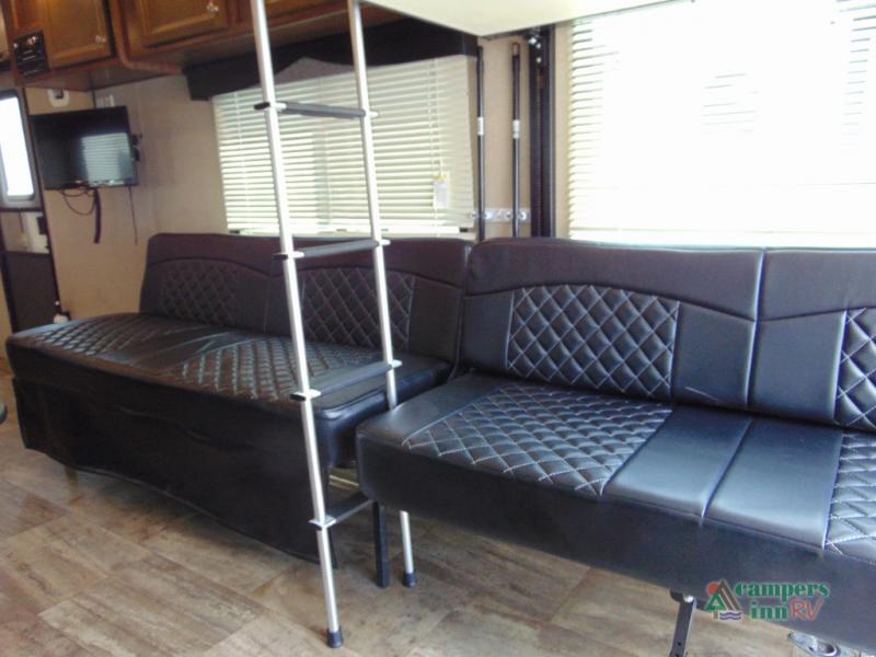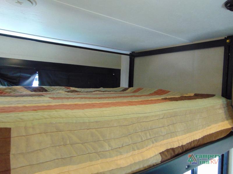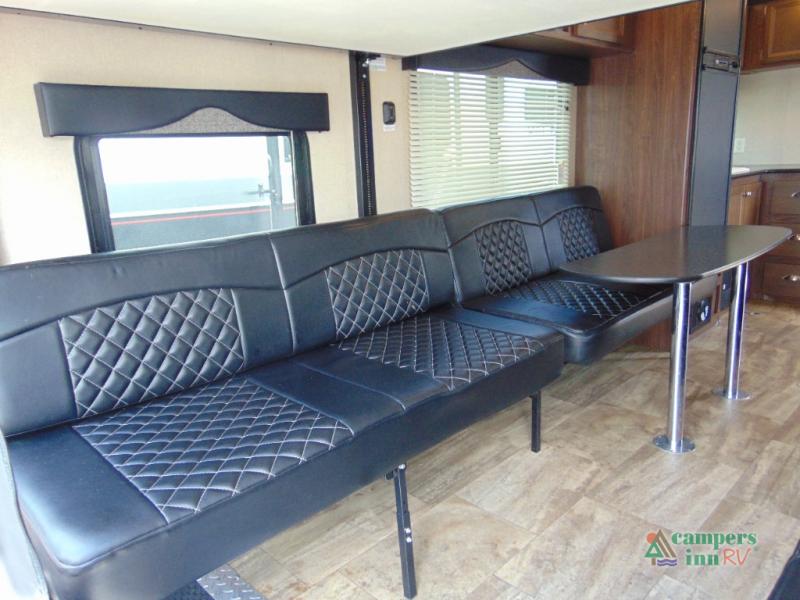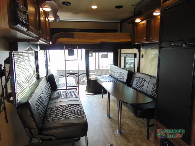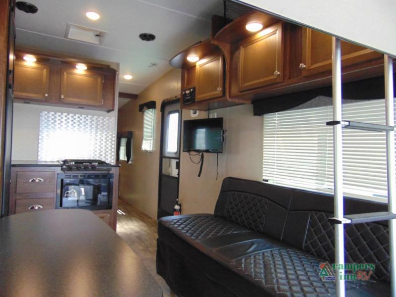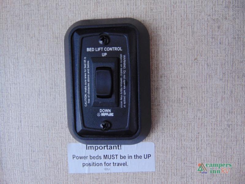 THIS RV INCLUDES PRIORITY RV SERVICE NETWORKLoad your toys and gear easily with the rear ramp spring assist door. Once inside the cargo area you will find dual rollover sofas with a HappiJac power bunk above that stores neatly up at the ceiling when not in use. This allows for the whole gang to sit and relax and catch their breath before the next ride, plus it adds more sleeping space at night.