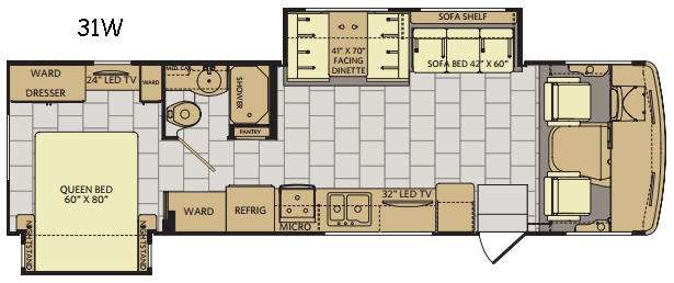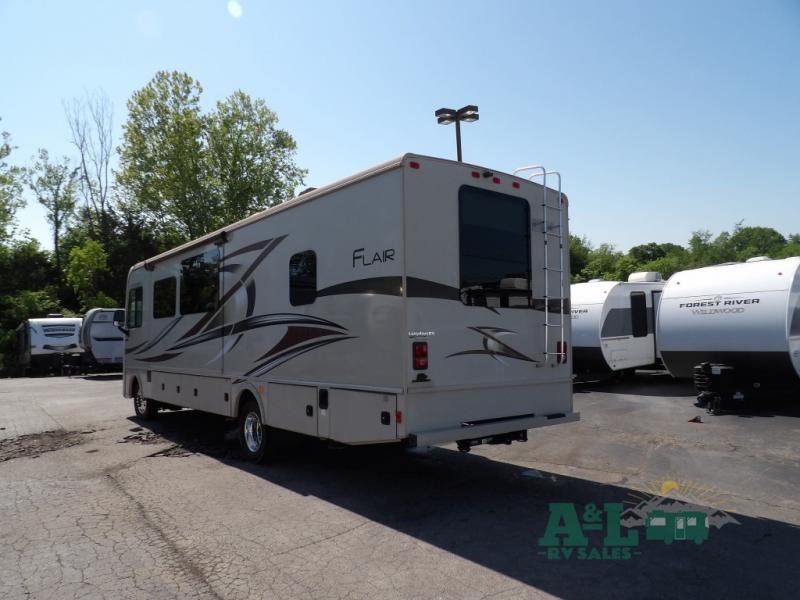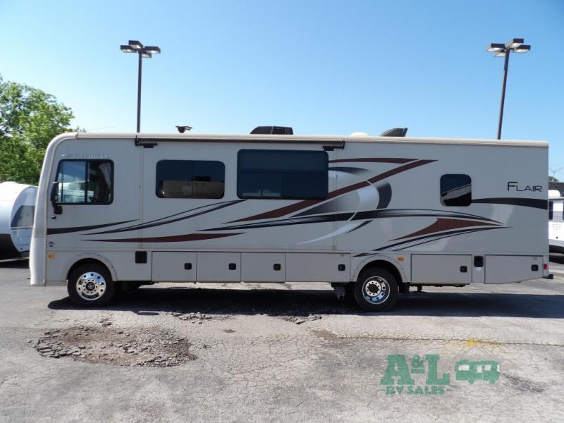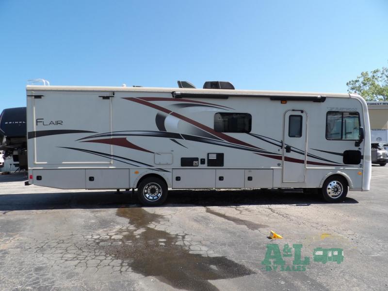 This Fleetwood Flair class A motorhome model 31W features dual slides, and all the accommodations to make traveling comfortable.