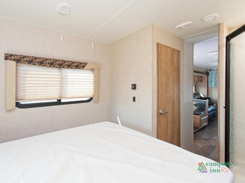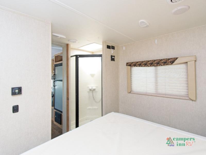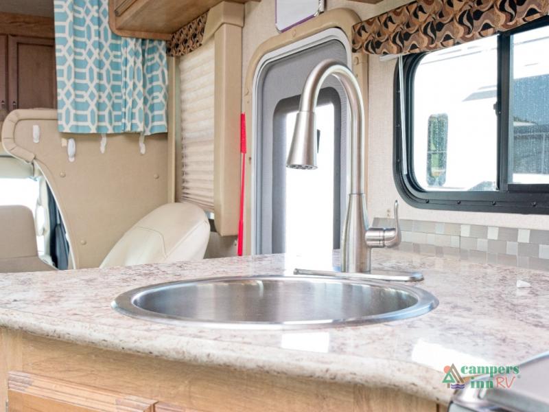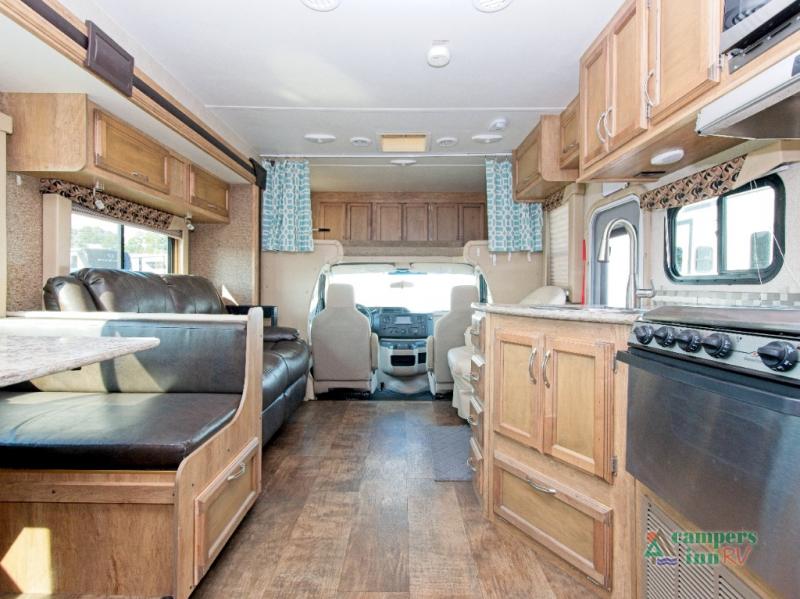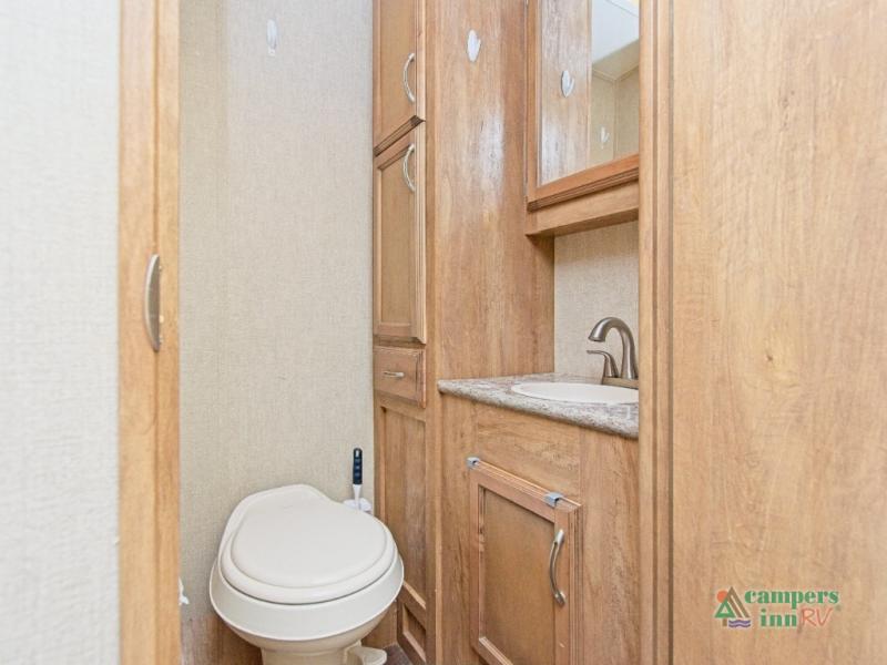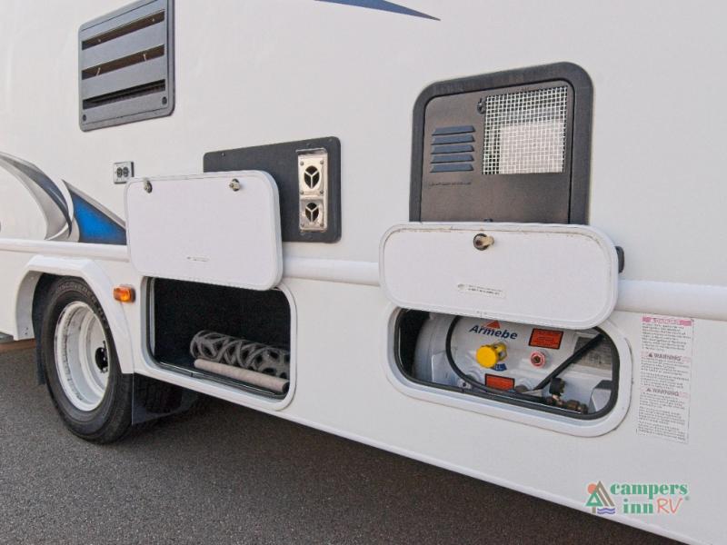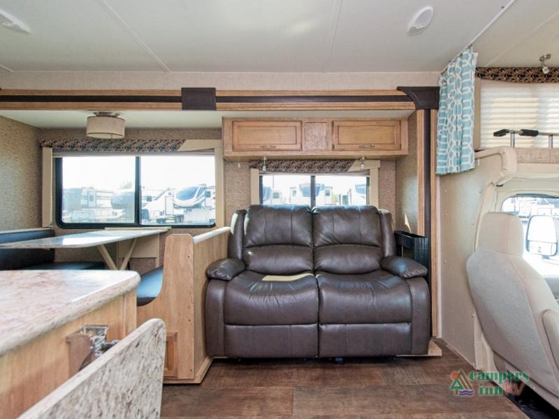- Comfortable Cab Area: Above the cab, you'll find a bunk for extra sleeping space or optional storage. Add an optional swing-arm TV for entertainment while parked.