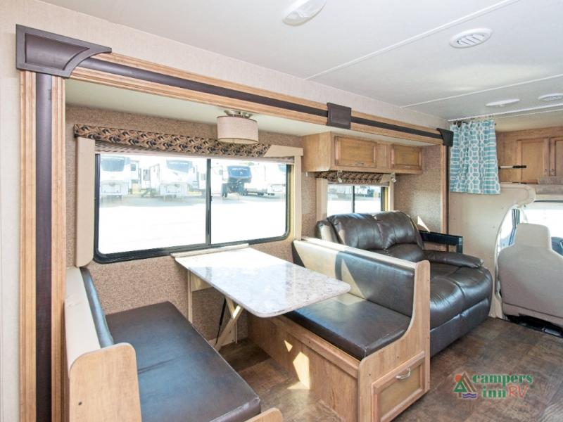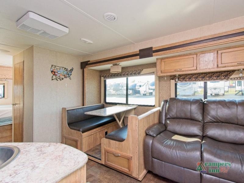 - Spacious Living Area: Step inside to find a jackknife sofa and booth dinette within a large slide-out, creating an open-concept living and kitchen space. Enjoy extra room to relax, dine, or entertain.