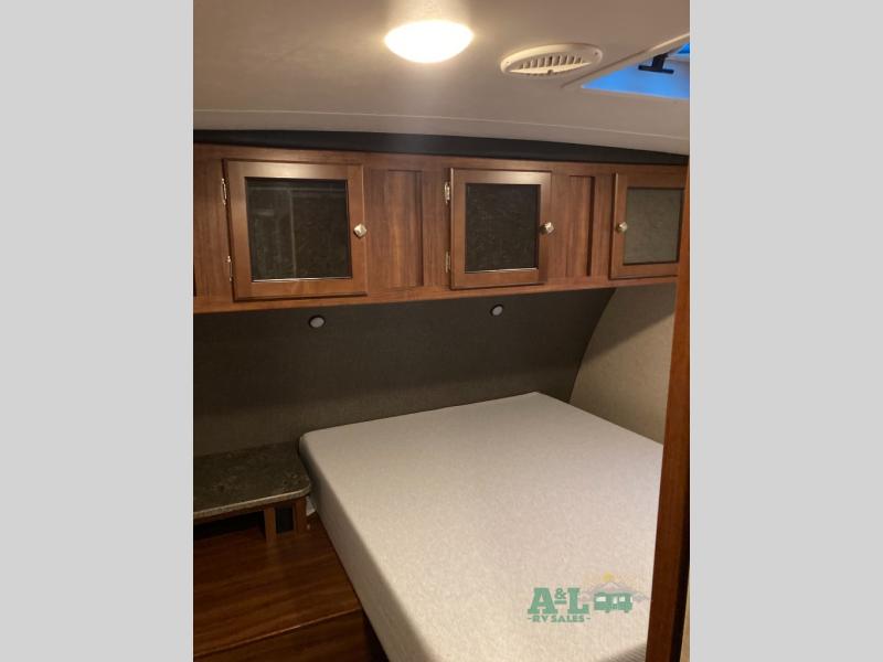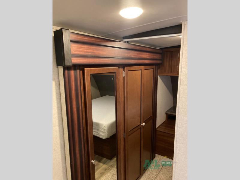 The front master bedroom features a queen bed, storage on either side, plus a wardrobe slide out that includes the bath mentioned above, and more!